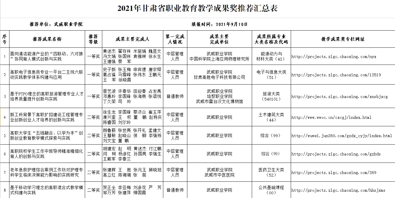 2021年甘肅省職業(yè)教育教學(xué)成果獎申報