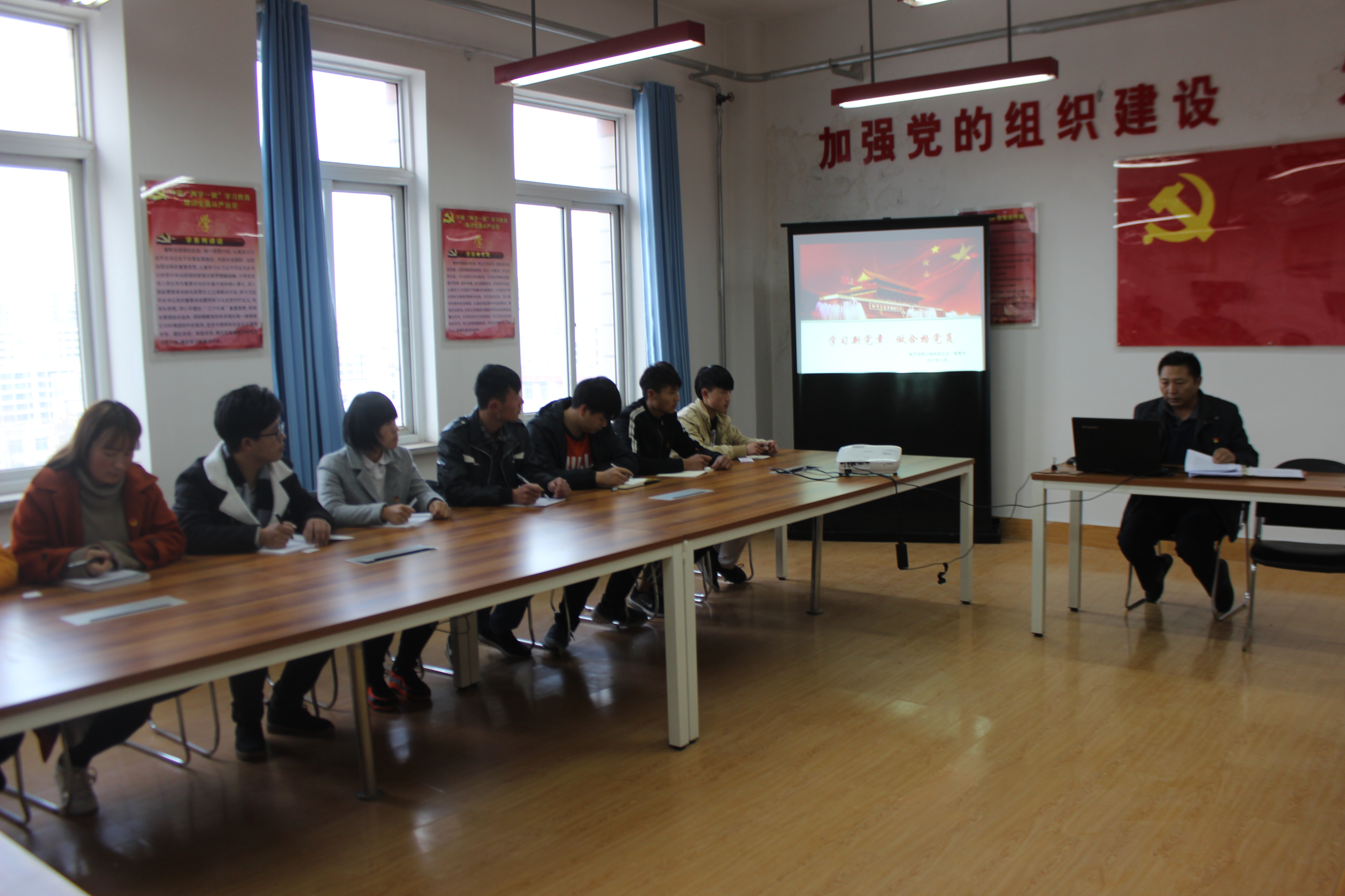 為深入學(xué)習(xí)黨的十九大會(huì)議精神,電子信息工程系黨總支于2017年11月29日下午在尚德樓五樓黨員活動(dòng)室開展了書記講黨課活動(dòng)。黨課由袁青年同志主講,題目為《學(xué)習(xí)黨章 踐行黨章》,全體黨員和入黨積極分子參加了黨課學(xué)習(xí)。