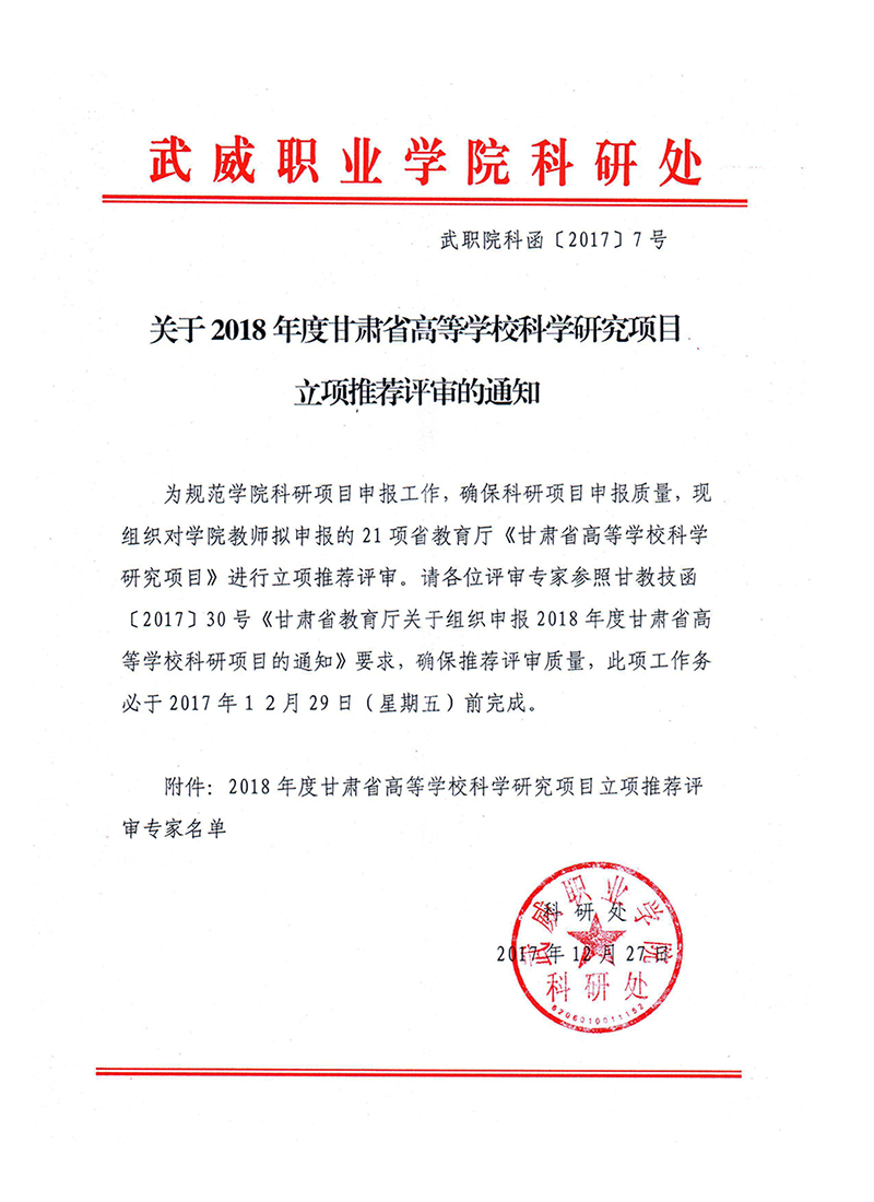 關(guān)于2018年度甘肅省高等學??茖W研究項目立項推薦評審的通知