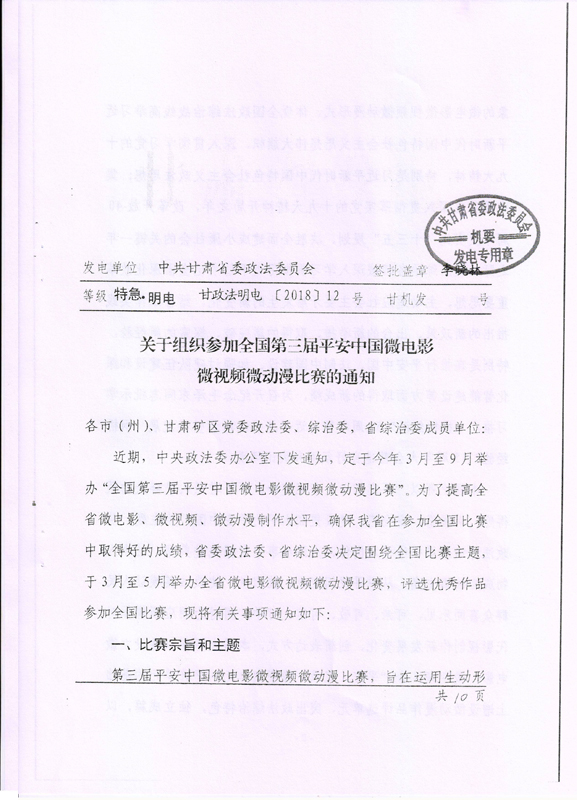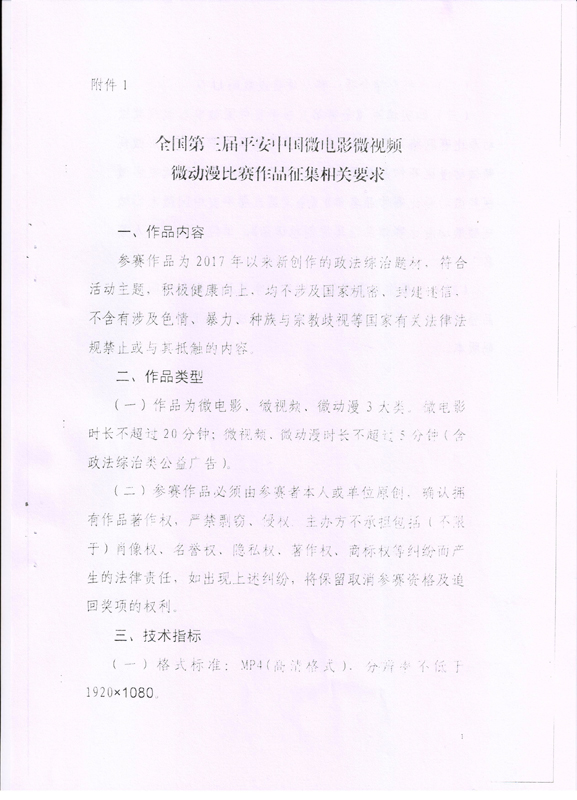 關(guān)于組織參加全國第三屆平安中國微電影微視頻微動(dòng)漫比賽的通知