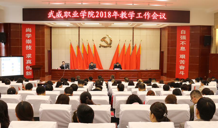 黨委副書(shū)記趙明對(duì)學(xué)院2017年教學(xué)工作做了簡(jiǎn)要回顧與總結(jié),結(jié)合全國(guó)全省教育工作會(huì)議精神,深入分析了學(xué)院目前面臨的困難與存在的問(wèn)題,從八個(gè)方面對(duì)2018年學(xué)院教學(xué)重點(diǎn)工作做了安排部署。一是加強(qiáng)思想政治建設(shè),貫徹落實(shí)中央決策部署。學(xué)習(xí)貫徹習(xí)近平新時(shí)代中國(guó)特色社會(huì)主義思想和黨的十九大精神,貫徹落實(shí)全國(guó)教育大會(huì)精神,細(xì)化落實(shí)職業(yè)教育具體工作措施。二是深化改革,增強(qiáng)辦學(xué)活力。堅(jiān)持依法治校,繼續(xù)完善內(nèi)部治理體系,加強(qiáng)學(xué)術(shù)委員會(huì)、職稱(chēng)評(píng)審委員會(huì)建設(shè),健全管理體系和運(yùn)行機(jī)制,大力推進(jìn)人才培養(yǎng)模式改革和招生考試制度改革。三是強(qiáng)化內(nèi)涵,全力推進(jìn)優(yōu)質(zhì)高職院校建設(shè)。抓實(shí)推進(jìn)優(yōu)質(zhì)高職院校6個(gè)模塊19個(gè)項(xiàng)目94項(xiàng)任務(wù)312條子任務(wù)的建設(shè)工作,加強(qiáng)內(nèi)部協(xié)調(diào),全力推進(jìn)。加強(qiáng)專(zhuān)業(yè)內(nèi)涵建設(shè)和實(shí)踐教學(xué)內(nèi)涵建設(shè),建立一批優(yōu)質(zhì)特色專(zhuān)業(yè)和一批高水平生產(chǎn)性實(shí)訓(xùn)基地;積極開(kāi)展創(chuàng)新創(chuàng)業(yè)教育實(shí)踐活動(dòng),加大社會(huì)培訓(xùn)力度,積極探索開(kāi)展國(guó)際合作與交流;加強(qiáng)智慧校園和校園文化建設(shè)。四是優(yōu)化結(jié)構(gòu),全力打造一批高水平優(yōu)質(zhì)特色專(zhuān)業(yè)。利用直屬附屬醫(yī)院、校辦企業(yè)武威泰豐新能源有限責(zé)任、甘肅(武威)國(guó)際陸港和武威保稅物流中心等優(yōu)勢(shì),加快重點(diǎn)專(zhuān)業(yè)建設(shè)力度,打造3~5個(gè)國(guó)家級(jí)高水平優(yōu)質(zhì)特色專(zhuān)業(yè)。五是合作培養(yǎng),著力打造專(zhuān)兼結(jié)合的高水平教師隊(duì)伍。大力實(shí)施教師素質(zhì)提升工程,完善同濟(jì)大學(xué)編制的《武威職業(yè)學(xué)院師資能力提升培訓(xùn)方案》,落實(shí)西安交通大學(xué)、天津職業(yè)大學(xué)簽訂的合作協(xié)議,推進(jìn)教師教學(xué)發(fā)展中心建設(shè)與運(yùn)行,強(qiáng)化專(zhuān)業(yè)帶頭人、新進(jìn)教師、骨干教師、優(yōu)秀青年教師的培養(yǎng)力度。六是育人為本,關(guān)注學(xué)生成長(zhǎng)成才。優(yōu)化育人環(huán)境,開(kāi)足開(kāi)好思想政治類(lèi)、人文素養(yǎng)提升類(lèi)課程,開(kāi)展校內(nèi)職業(yè)技能競(jìng)賽,鼓勵(lì)支持參加省級(jí)以上比賽,培養(yǎng)學(xué)生能力。七是深化產(chǎn)教融合,提升社會(huì)服務(wù)水平。充分發(fā)揮職業(yè)教育集團(tuán)作用,深化“職業(yè)教育+產(chǎn)業(yè)園區(qū)+生產(chǎn)基地”的校企合作模式;提升校辦企業(yè)、直屬附屬醫(yī)院的教學(xué)服務(wù)功能;各專(zhuān)業(yè)要拓展產(chǎn)教融合渠道,精準(zhǔn)施策,服務(wù)國(guó)家戰(zhàn)略。八是完善質(zhì)量保障機(jī)制,提升人才培養(yǎng)質(zhì)量。編制并逐步推行教學(xué)工作診斷與改進(jìn)方案,學(xué)習(xí)實(shí)施精細(xì)化管理模式,加大教學(xué)督查力度,規(guī)范教學(xué)秩序,提高教育教學(xué)管理水平。