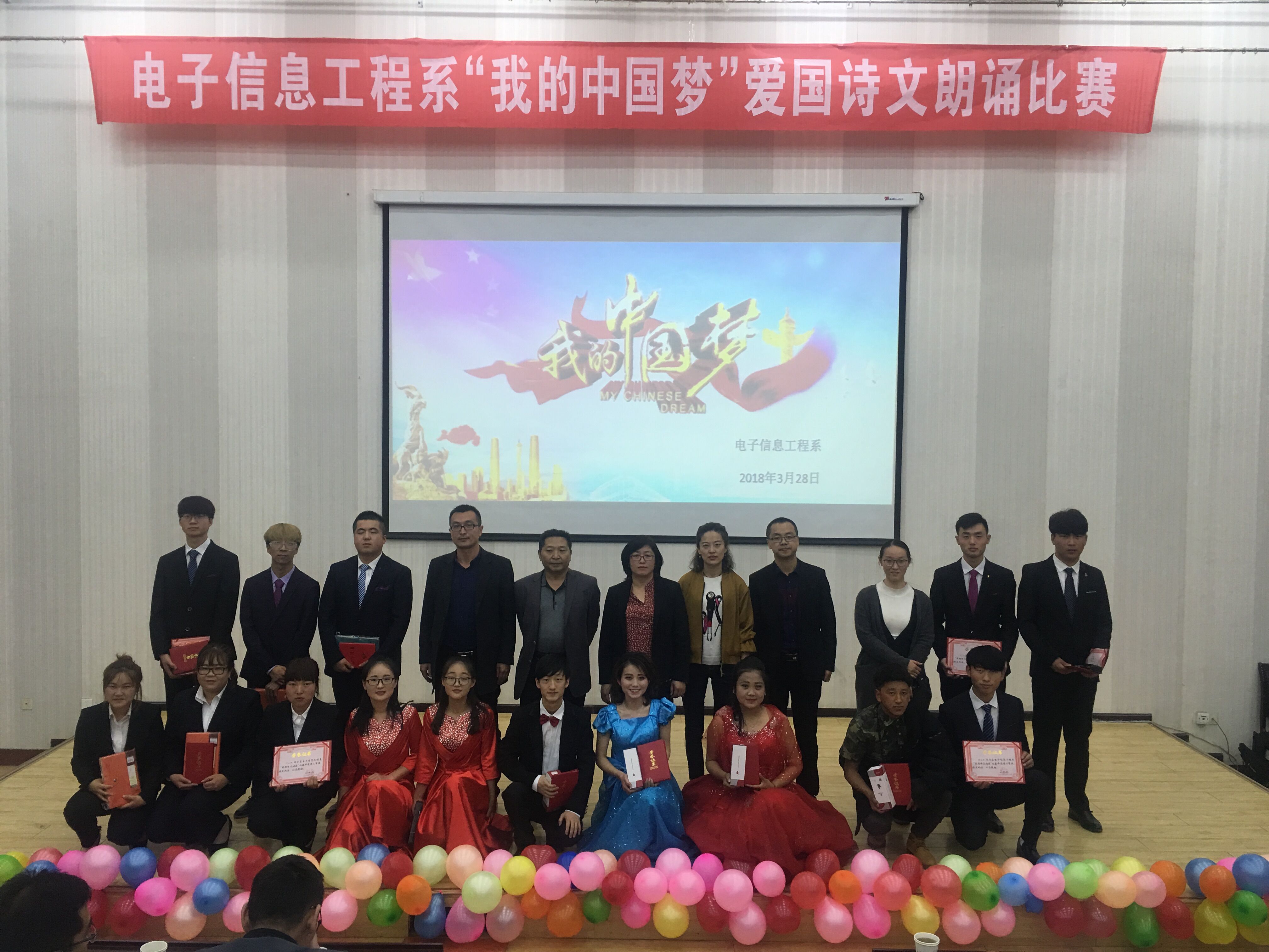3月28日,電子信息工程系在正德廳舉辦了“我的中國夢”愛國詩文朗誦比賽。活動得到了系領(lǐng)導(dǎo)的高度重視和大力的支持,朗誦選手全情投入,詩詞韻澤校園,本次朗誦比賽有10個參賽隊,17級計算機網(wǎng)絡(luò)大專班參賽隊榮獲比賽一等獎。