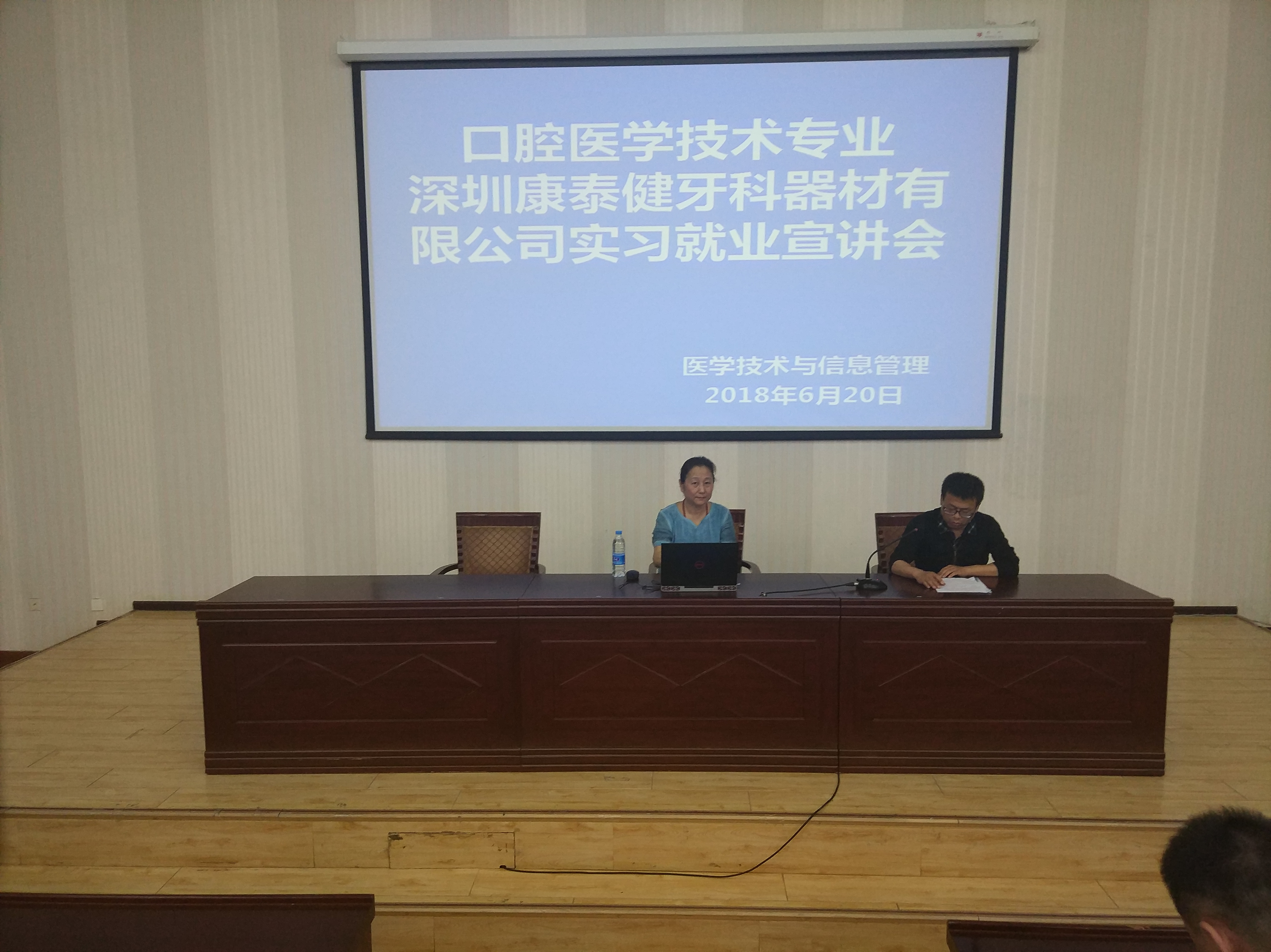 辛金紅校長(zhǎng)對(duì)口腔醫(yī)學(xué)技術(shù)專(zhuān)業(yè)的發(fā)展歷史和當(dāng)前口腔醫(yī)學(xué)技術(shù)的前景做了詳細(xì)介紹;介紹了深圳市康泰健牙科器材有限公司的概況、理念、人才策略,對(duì)新員工的具體要求和發(fā)展通道;對(duì)同學(xué)最關(guān)心的實(shí)習(xí)期間的待遇進(jìn)行了現(xiàn)場(chǎng)解答。