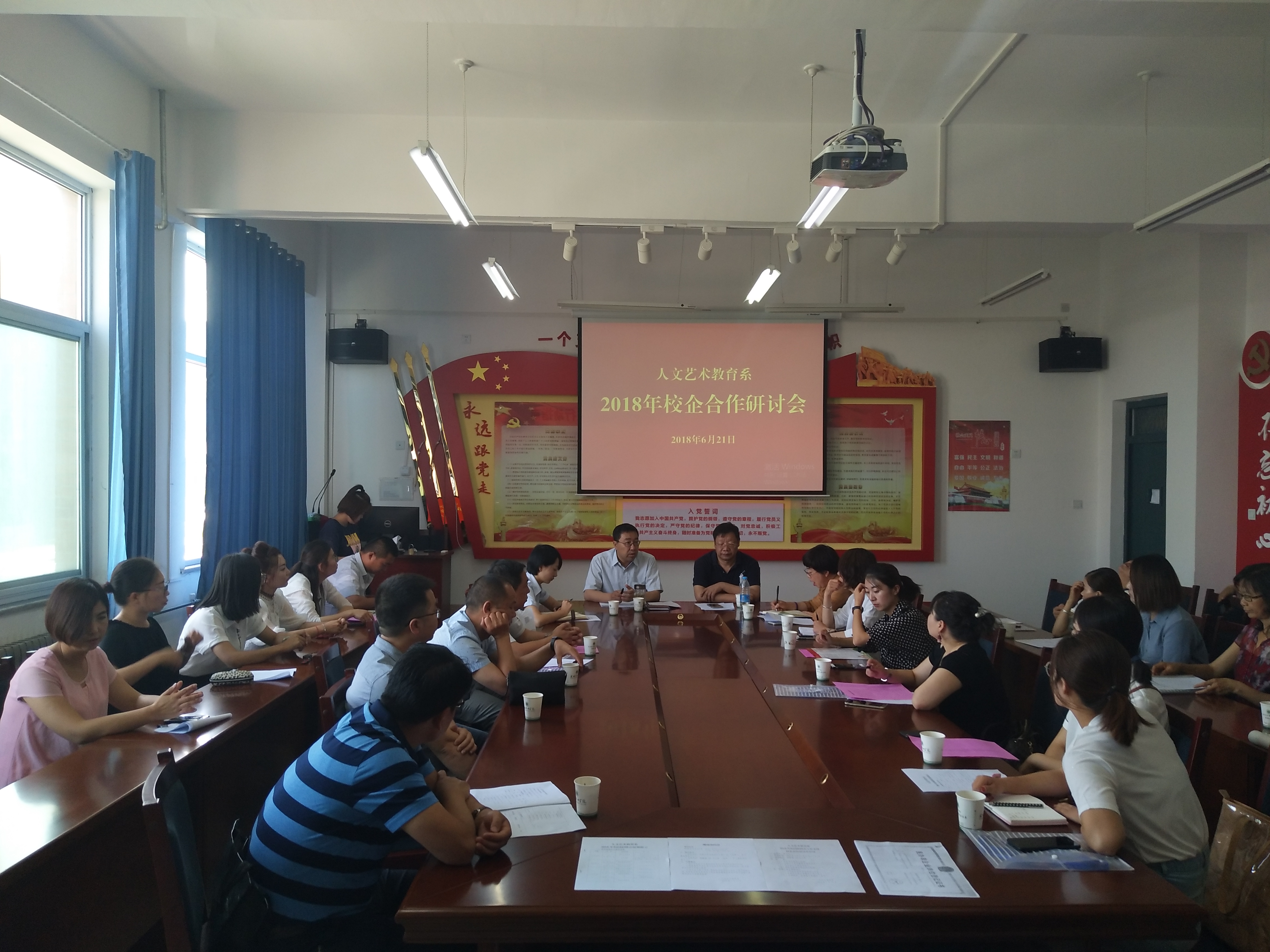近日,學院人文藝術教育系牽頭,在勵勤樓209會議室召開學前教育專業(yè)校企合作研討會,人文藝術教育系黨總支書記胡靜峰同志以及應邀的23家合作單位參加了研討會。學院紀委書記張富國同志參加了研討會。