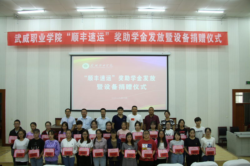 6月26日,武威職業(yè)學(xué)院“順豐速運(yùn)”獎(jiǎng)助學(xué)金發(fā)放暨設(shè)備捐贈(zèng)儀式在學(xué)院正德廳舉行。江蘇順豐速運(yùn)江蘇順豐通訊服務(wù)有限公司副總經(jīng)理張輝華先生,武威職業(yè)學(xué)院黨委委員、副院長王永緒同志、江蘇順豐通訊服務(wù)有限公司人力資源部經(jīng)理孫潞、項(xiàng)目經(jīng)理高國軍、招聘經(jīng)理明微、經(jīng)濟(jì)管理系書記潘從民、主任張伯成、物流專業(yè)教師代表和物流專業(yè)16、17級全體同學(xué)及相關(guān)專業(yè)學(xué)生代表近200人參加本次儀式。發(fā)放儀式由潘從民主持。