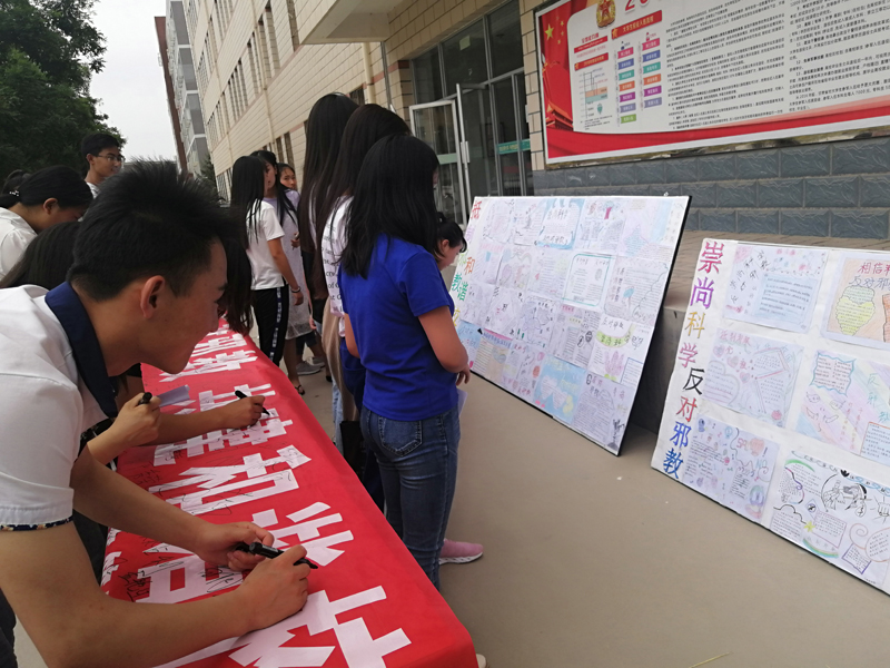 先后舉行“崇尚科學(xué),反對(duì)邪教,共建和諧校園”簽名活動(dòng)、開(kāi)展“崇尚科學(xué),反對(duì)邪教”主題班會(huì)。班會(huì)課上,老師為學(xué)生講解什么是邪教組織以及邪教的危害,培養(yǎng)學(xué)生的理性思維,樹(shù)立正確的世界觀、人生觀、價(jià)值觀,用科學(xué)的精神自覺(jué)抵制邪教。并通過(guò)黑板報(bào),張貼反邪教手抄報(bào)等多種活動(dòng)形式,讓師生對(duì)邪教危害性有進(jìn)一步地了解,提高全社會(huì)反邪教、樹(shù)正氣的意識(shí)。以自己的實(shí)際行動(dòng),積極倡導(dǎo)、傳播科學(xué)思想,普及科學(xué)知識(shí),弘揚(yáng)科學(xué)精神,用科學(xué)的方法辦事,以科學(xué)的態(tài)度對(duì)待事物,共同促進(jìn)校園和諧發(fā)展,提高了師生認(rèn)識(shí)和抵制邪教的意識(shí)與能力。