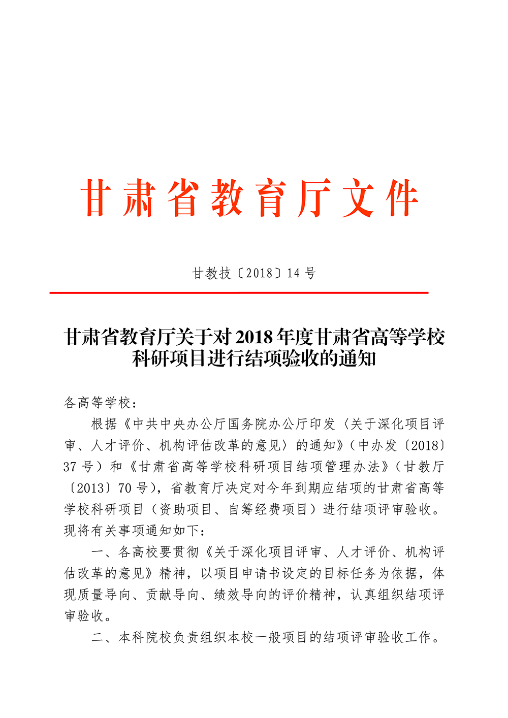 甘肅省教育廳關(guān)于對2018年度甘肅省高等學(xué)??蒲许?xiàng)目進(jìn)行結(jié)項(xiàng)的通知(附件).doc