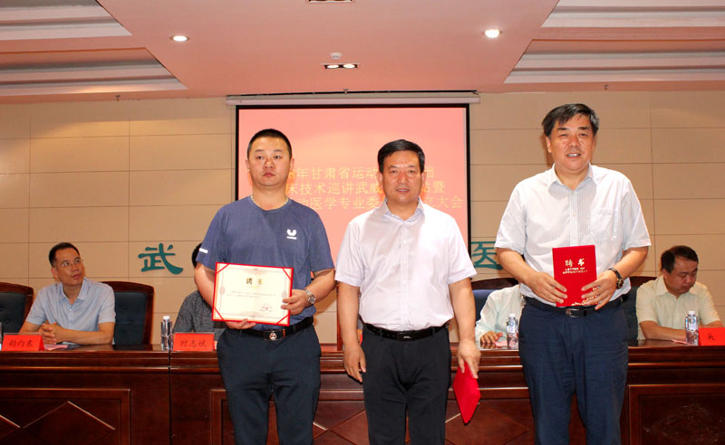 武威市衛(wèi)計委副主任張學(xué)龍,西安市紅會醫(yī)院運(yùn)動醫(yī)學(xué)診療中心主任鄭江教授,西安交通大學(xué)第二附屬醫(yī)院骨科主任時志斌教授,蘭大二院運(yùn)動醫(yī)學(xué)科主任吳萌教授,蘭大二院骨科主任醫(yī)師韻向東教授,武威市醫(yī)學(xué)會副會長、學(xué)院直屬附屬醫(yī)院工會主席李文輝等同志出席學(xué)會成立大會,并向新任武威市運(yùn)動醫(yī)學(xué)專業(yè)委員會主委胡斌祥,副主委王世中、牛存良、康萬年頒發(fā)聘書。