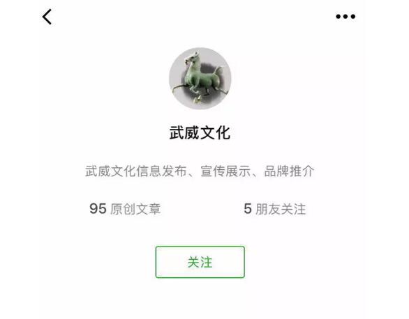 2.點擊“關(guān)注”按鈕,關(guān)注“武威文化”公眾號。