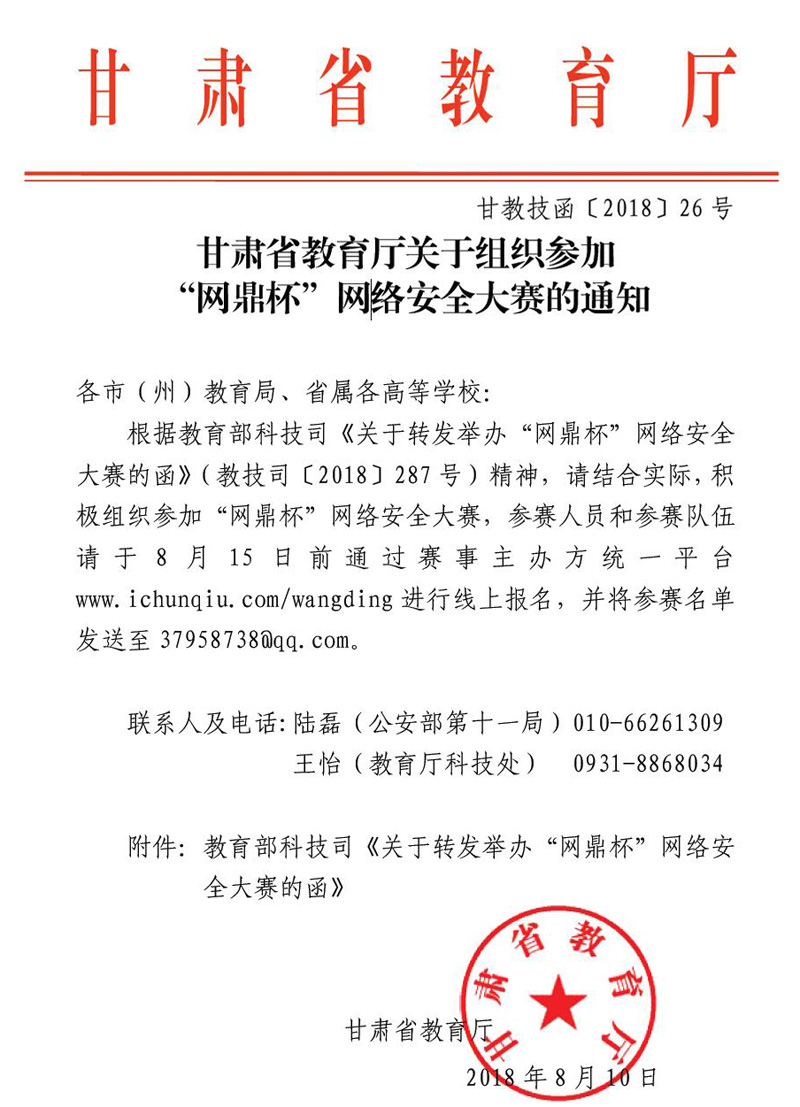 附件:教育部科技司關(guān)于轉(zhuǎn)發(fā)《關(guān)于舉辦“網(wǎng)鼎杯”網(wǎng)絡(luò)安全大賽的函》.pdf