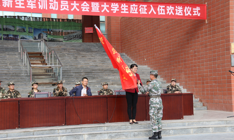 大會(huì)現(xiàn)場(chǎng),田迎春向承訓(xùn)單位授予軍訓(xùn)團(tuán)旗。大會(huì)在雄壯的《中國(guó)人民解放軍軍歌》聲中拉開(kāi)了軍訓(xùn)序幕。