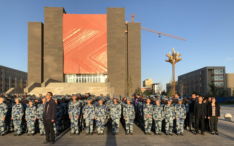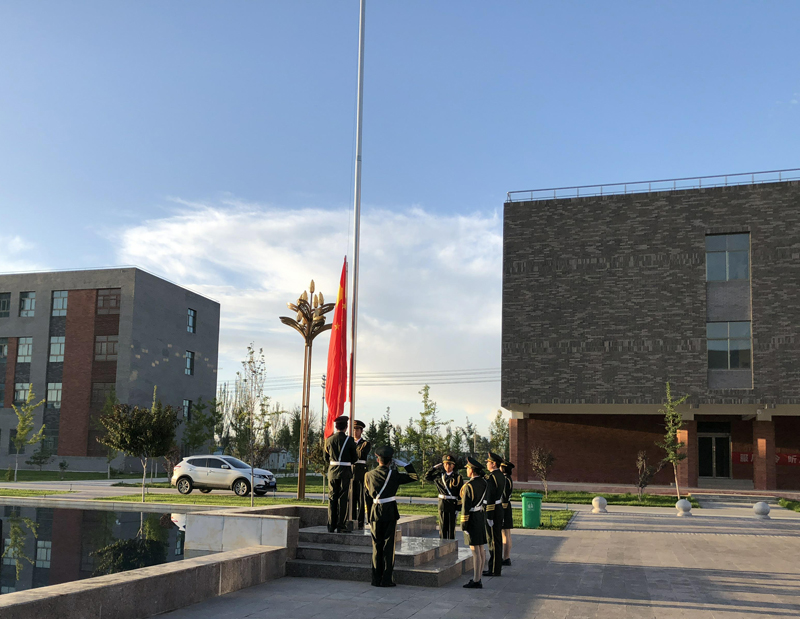 師生們精神飽滿,抬頭挺胸,伴著《義勇軍進行曲》的響起,唱國歌、行注目禮,莊嚴(yán)肅穆。