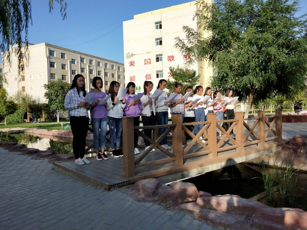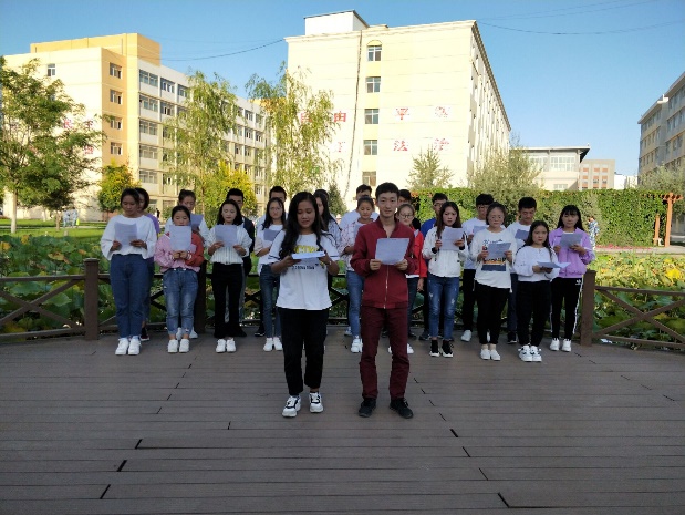 同學(xué)們分別在圖書館、荷花池等地方進(jìn)行詩詞朗誦及詩詞交流。朗誦的詩詞主要有明代張恒的《涼州詞》、唐代李白的《關(guān)山月》及唐代王昌齡的《從軍行》等多篇優(yōu)秀作品。