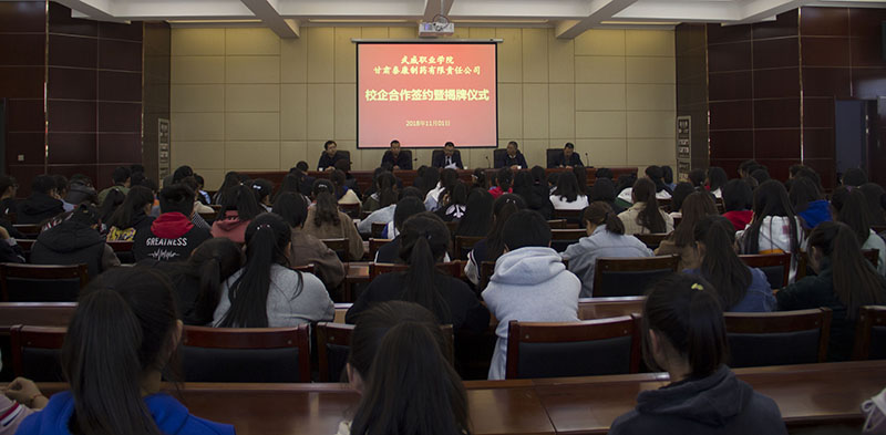 為提高人才培養(yǎng)質(zhì)量和辦學(xué)水平,加強(qiáng)校企協(xié)同育人機(jī)制建設(shè),11月1日下午,藥學(xué)系與甘肅泰康制藥有限責(zé)任公司校企合作共建“就業(yè)實(shí)習(xí)基地”簽約揭牌儀式在行樹樓北側(cè)會議室隆重舉行。甘肅泰康制藥有限責(zé)任公司投資方—北京久朝集團(tuán)產(chǎn)業(yè)中心總監(jiān)楊宏超、公司總工程師毛著鴻、財務(wù)總監(jiān)郝敏等企業(yè)領(lǐng)導(dǎo)出席本次儀式。學(xué)院教務(wù)處處長仲生仁、招生就業(yè)處處長蔡柱山、藥學(xué)系主任魏潤明、副主任楊建美、黨總支副書記單光年及藥學(xué)系160余名師生參加了此次簽約揭牌儀式。儀式由魏潤明主持。