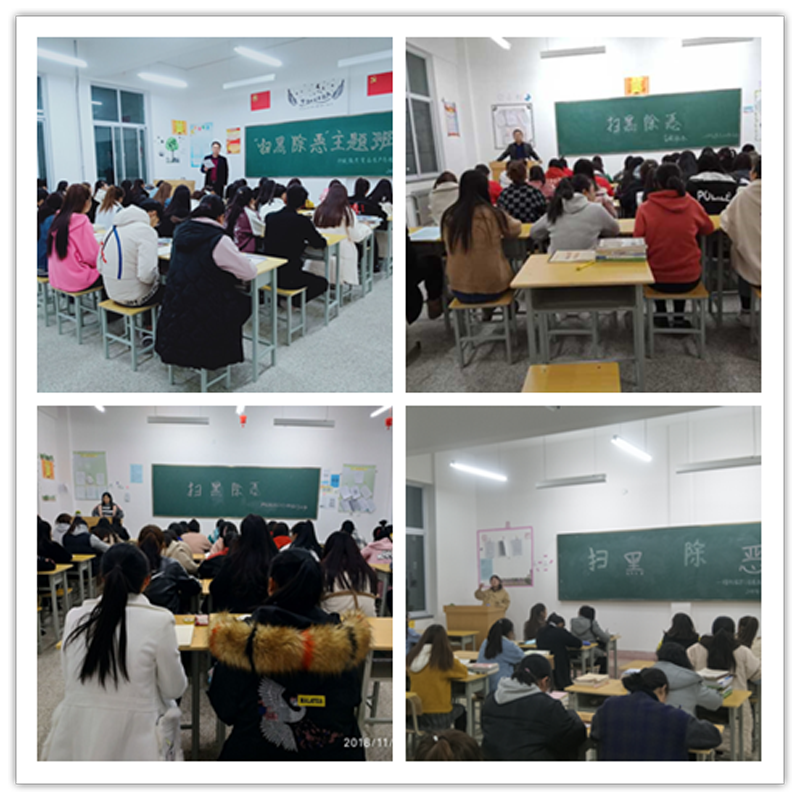 為有效開展掃黑除惡專項(xiàng)斗爭,加強(qiáng)學(xué)生管理工作,營造安全、和諧、文明、有序的校園環(huán)境,增強(qiáng)學(xué)生的安全防范意識和避險能力,保障學(xué)生的人身與財產(chǎn)安全。近期,現(xiàn)代農(nóng)業(yè)技術(shù)系組織各班認(rèn)真召開“掃黑除惡”主題班會。