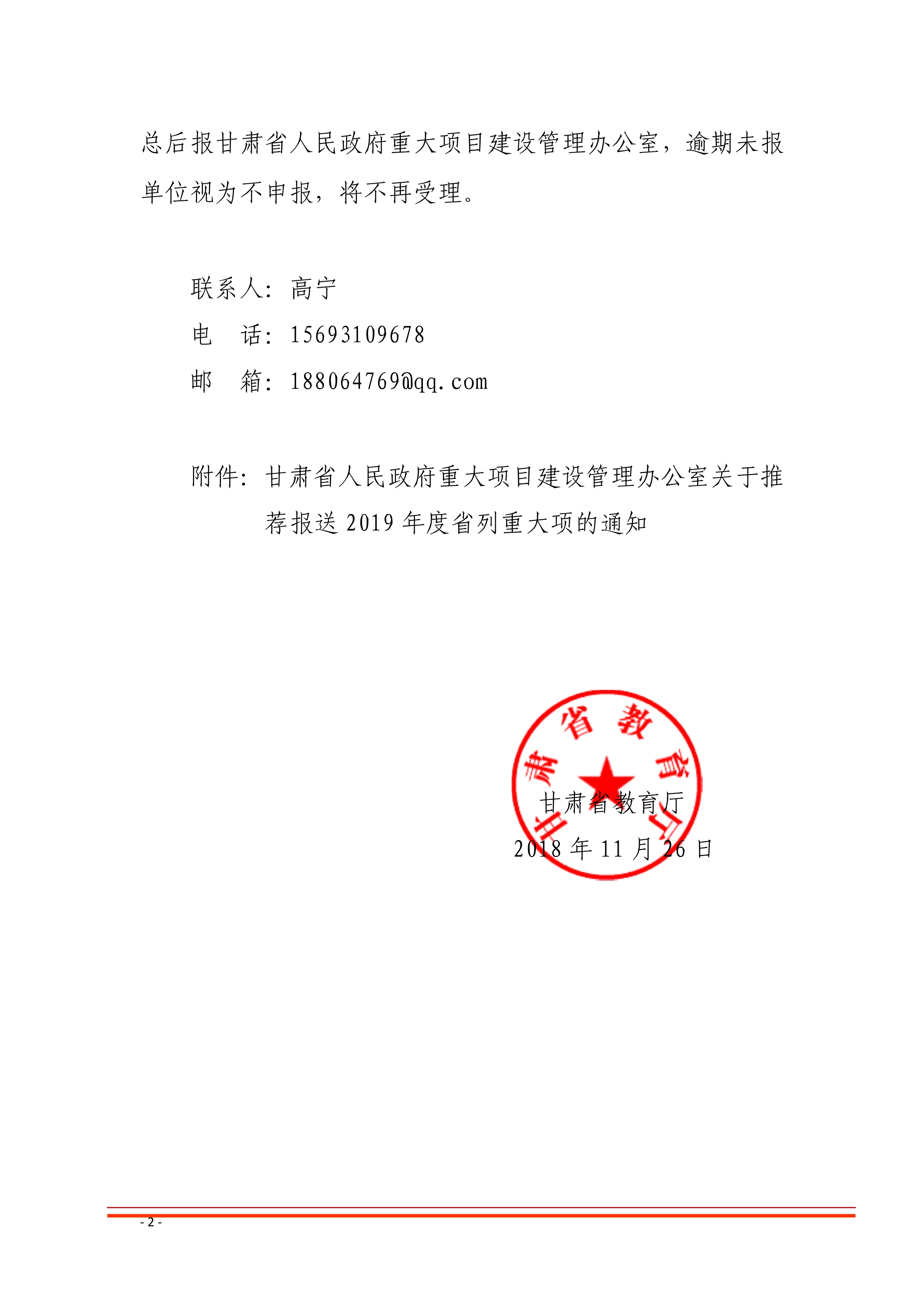 轉(zhuǎn)發(fā)甘肅省教育廳關(guān)于組織申報(bào)2019年度省列重大項(xiàng)目的通知