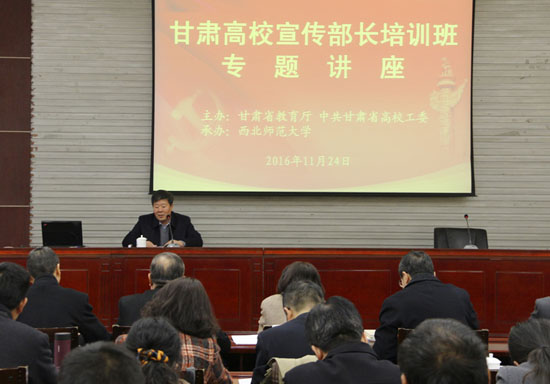 11月24日至25日,由甘肅省教育廳、甘肅省高校工委主辦,西北師范大學(xué)承辦的甘肅高校宣傳部長培訓(xùn)班在西北師大舉辦。全省45所高校宣傳部(新聞中心)負(fù)責(zé)人參加培訓(xùn)。我院宣傳統(tǒng)戰(zhàn)部部長王繼林參加培訓(xùn)。
