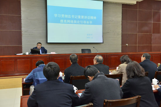 梁和平就貫徹落實習(xí)近平總書記關(guān)于黨的新聞輿論工作的重要論述精神作了解讀。他深入分析了我國當(dāng)前面臨的網(wǎng)絡(luò)輿情形勢,全面闡述了網(wǎng)絡(luò)輿情的主要特點、演變途徑、價值判斷標(biāo)準(zhǔn)、研判基本要點和應(yīng)對原則后,結(jié)合大量案例,就輿論引導(dǎo)技巧作了深入講解。