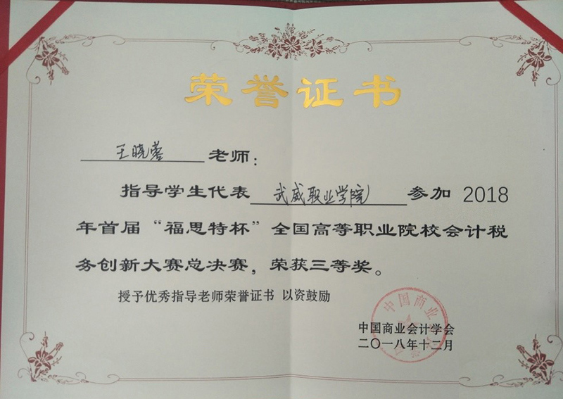 本次比賽得到學(xué)院領(lǐng)導(dǎo)、系領(lǐng)導(dǎo)的高度重視與大力支持。經(jīng)濟管理系專門成立了輔導(dǎo)小組,嚴(yán)格按照國賽要求進(jìn)行實戰(zhàn)訓(xùn)練。近年來,經(jīng)濟管理系參加各級各類會計技能競賽,適時修訂會計人才培養(yǎng)方案,提升學(xué)生動手實踐能力,培養(yǎng)學(xué)生的職業(yè)核心和專業(yè)崗位能力。做到技能競賽與教學(xué)改革、人才培養(yǎng)相輔相成、相得益彰,使學(xué)生團(tuán)隊合作能力、創(chuàng)新思維能力、職業(yè)能力不斷加強,實現(xiàn)了“以賽促教、以賽促學(xué)、以賽促改”的預(yù)期效果。經(jīng)濟管理系將以此為契機,不斷提高人才培養(yǎng)質(zhì)量,為學(xué)院優(yōu)質(zhì)院校建設(shè)增磚添瓦。