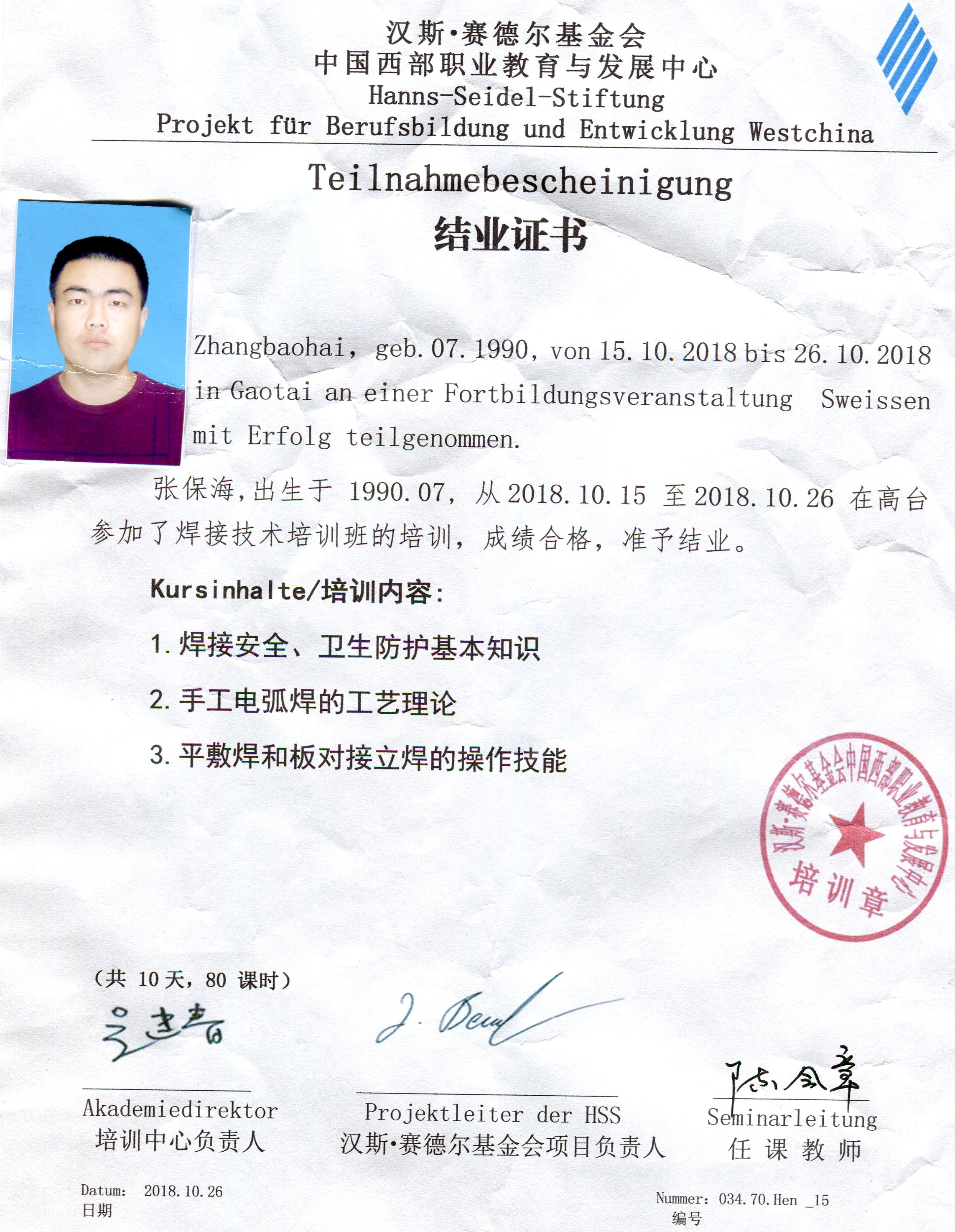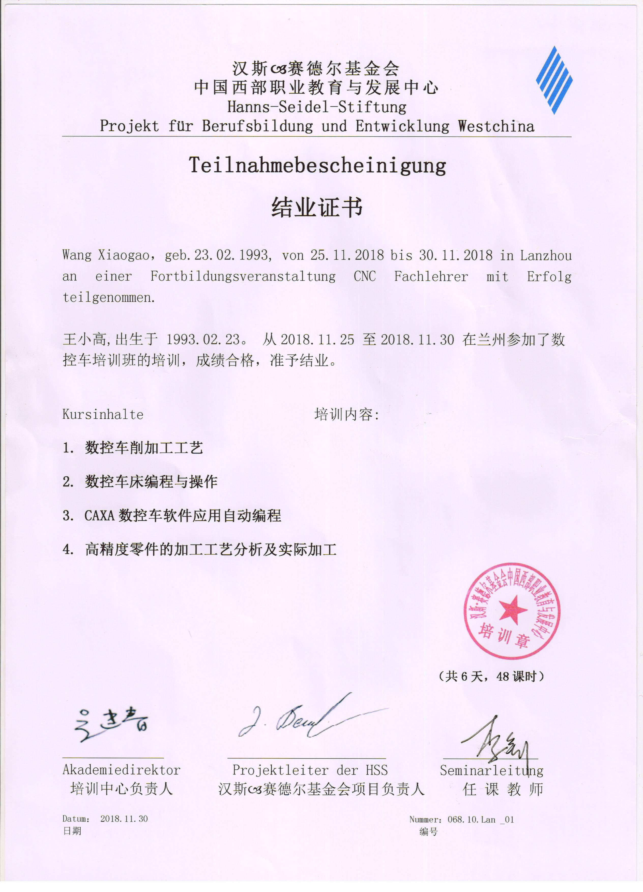 參加德國漢斯?賽德爾基金會職業(yè)院校2018年秋季培訓