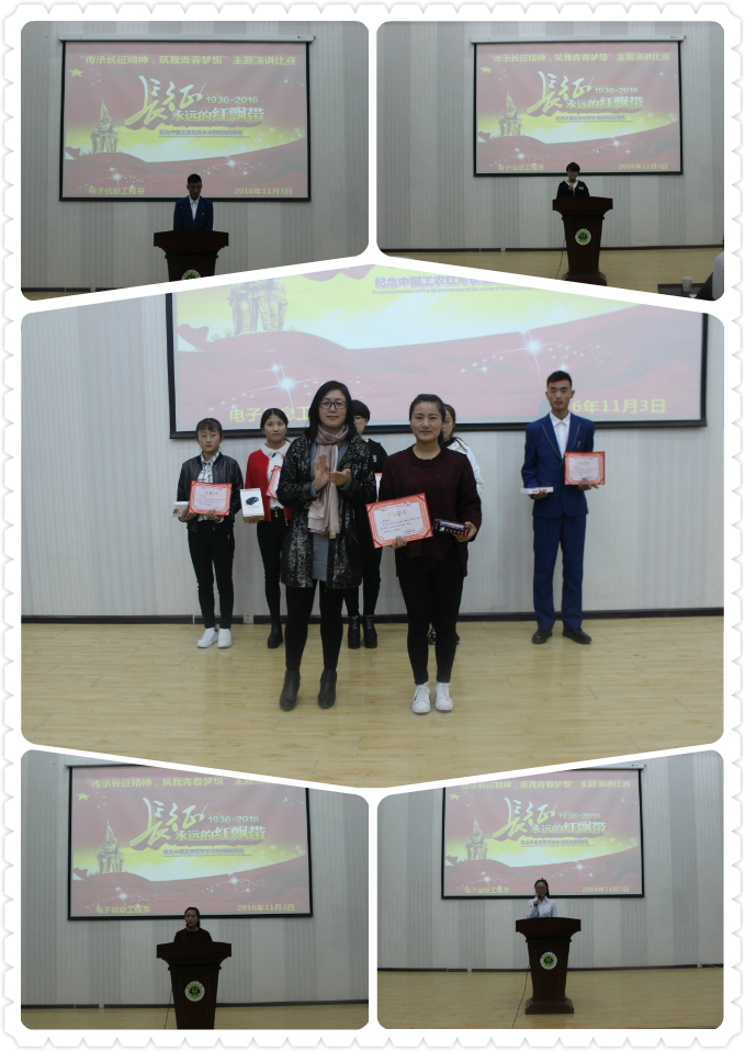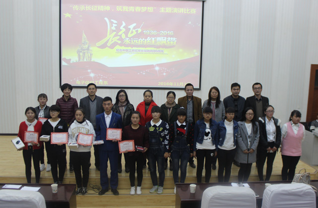 為貫徹習(xí)近平總書記在“紅軍長(zhǎng)征勝利80周年大會(huì)”上發(fā)表“不忘初心、繼續(xù)前進(jìn),走好新的長(zhǎng)征路”的重要講話,激發(fā)師生弘揚(yáng)偉大的長(zhǎng)征精神,電子信息工程系于11月3日在正德廳舉辦了 “傳承長(zhǎng)征精神,筑我青春夢(mèng)想”主題演講比賽。系主任李亞梅及各位班主任擔(dān)任本次比賽評(píng)委,2016級(jí)全體學(xué)生觀看了比賽。