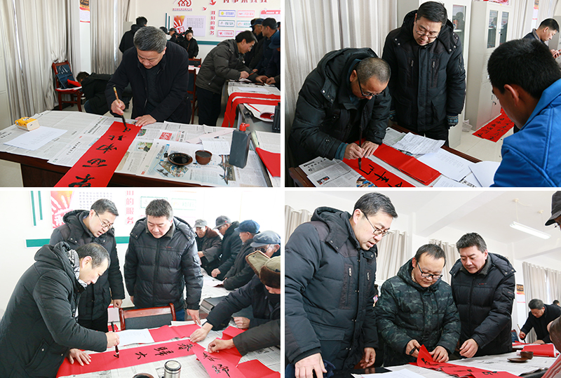 1月9日,學(xué)院扶貧幫扶點(diǎn)古浪縣黃花灘8號移民點(diǎn)熱鬧非凡,人文藝術(shù)教育系黨總支開展了一場喜慶活潑的“喜迎佳節(jié)、送春聯(lián)文化進(jìn)萬家”主題黨日活動(dòng),村委會(huì)內(nèi)外圍滿了欣賞書畫的干部群眾。