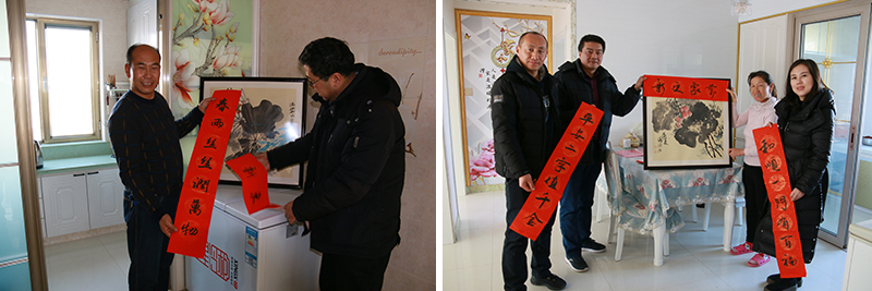 在寫完300余幅春聯(lián)后,幫扶干部將春聯(lián)、繪畫作品送到幫扶對象家中,將新春的祝福和慰問一一送達(dá),與他們交心談心拉家常,傳達(dá)中央的各項(xiàng)會(huì)議精神及惠民政策,確保貧困戶過一個(gè)溫暖祥和的春節(jié)。
