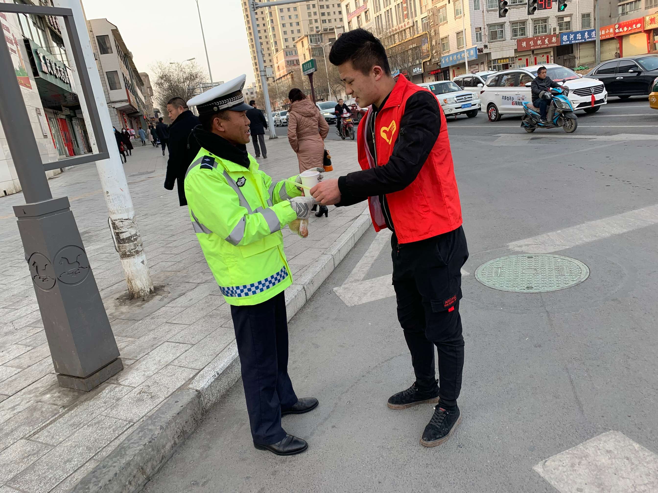 升旗儀式結(jié)束后,汽車(chē)系組織了“學(xué)雷鋒精神,送溫暖早餐”主題學(xué)生志愿者活動(dòng),為辛苦工作的環(huán)衛(wèi)工人及交警送上溫暖的早餐。詮釋了當(dāng)代大學(xué)生繼承和發(fā)揚(yáng)“雷鋒精神”重在行動(dòng),人人參與的積極景象。