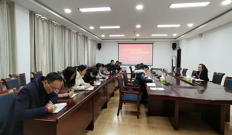 全體專兼職教師在系黨總支書記晏素珍同志的帶領(lǐng)下,共同學(xué)習(xí)了“全國優(yōu)秀教師”李德威同志的先進(jìn)事跡、《新時(shí)代高校教師職業(yè)行為十項(xiàng)準(zhǔn)則》和《高校教師師德失范行為處理的指導(dǎo)意見》。