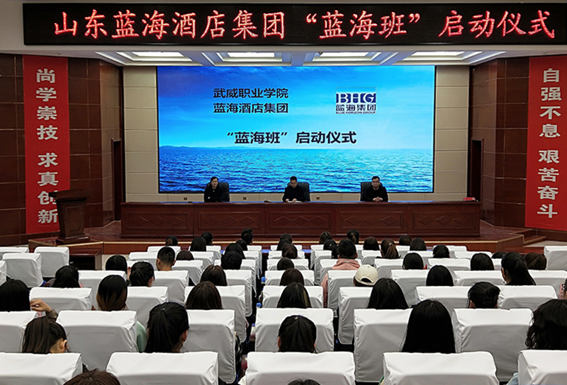 3月9日,由經(jīng)濟管理系與山東藍海酒店集團舉辦的“藍海班”啟動儀式在我院大學生活動中心箐英廳舉行,啟動儀式由經(jīng)濟管理系主任張伯成主持,山東藍海酒店集團人力資源部總經(jīng)理楊兆云、人力資源部招聘部總監(jiān)王麗出席啟動儀式。