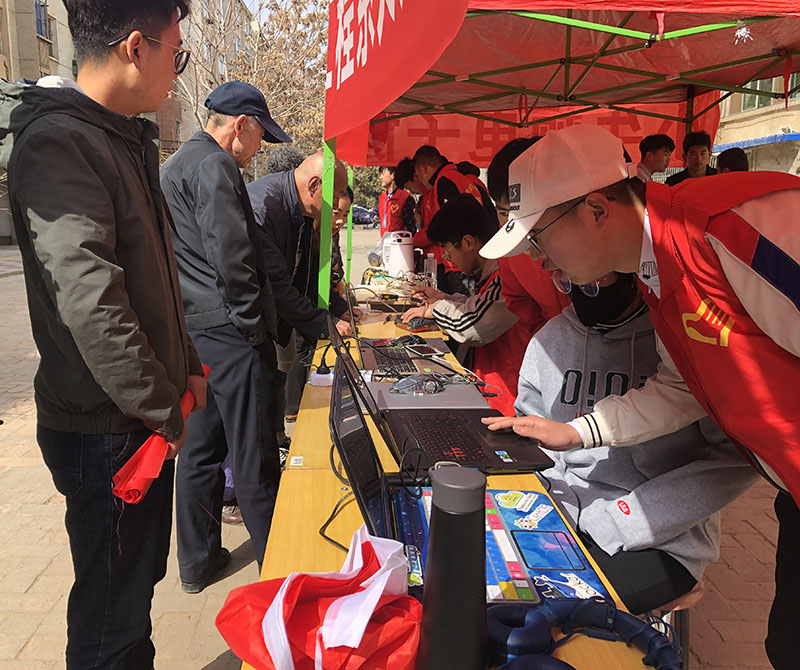 3月23日上午,我系小牛頓電子協(xié)會(huì)和計(jì)算機(jī)協(xié)會(huì)的志愿者們,來(lái)到泰安小區(qū)開(kāi)展了以“發(fā)揚(yáng)雷鋒精神,科技服務(wù)進(jìn)社區(qū)”為主題的家電、電腦義務(wù)維修活動(dòng)。志愿者們對(duì)小區(qū)居民送來(lái)的電水壺、電飯煲、微波爐、影碟機(jī)等家電進(jìn)行了維修,受到了小區(qū)居民的歡迎。志愿者們還不辭辛苦,上門對(duì)有故障的電腦進(jìn)行重裝系統(tǒng)、更新驅(qū)動(dòng)等服務(wù),師生們認(rèn)真負(fù)責(zé)、一絲不茍的精神得到了居民們的贊許。