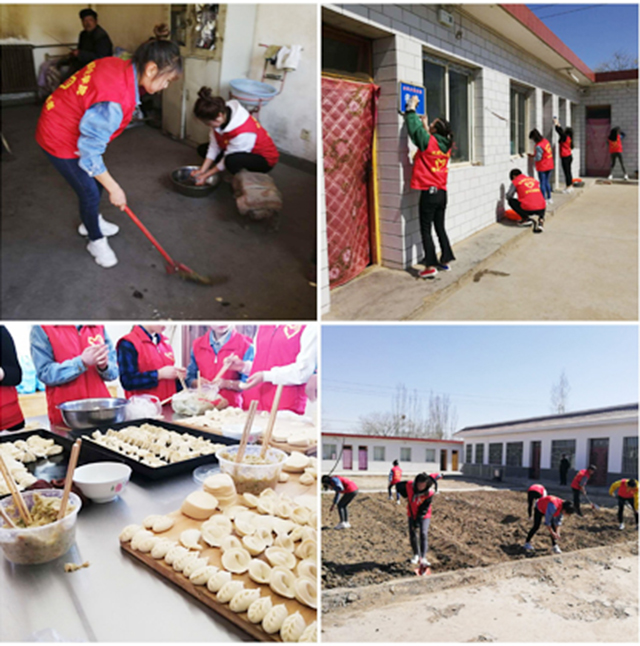 31日深入敬老院開展送溫暖志愿服務(wù)。為留守老年人、五保戶以及空巢老人、孤寡老人送去關(guān)愛,志愿者們首先將帶去的毛巾、香皂、牙刷、牙膏等生活用品送到老人手里。隨后志愿者們開展義務(wù)勞動,幫助老人們打掃宿舍衛(wèi)生,清掃院內(nèi)垃圾,并幫老人耕作菜園、松土、撿深埋園地的各類垃圾塑料。之后將事先準(zhǔn)備好的餃子皮、餃子餡拿出來給他們包餃子吃,期間志愿者和老人們親切交談,詢問他們的生活情況,了解他們的精神狀況,給予他們最美好的祝福。志愿者以微薄之力幫助他們解決了一些實(shí)際困難,更從精神上給予關(guān)愛,讓他們內(nèi)心感受溫暖,安享晚年之樂。