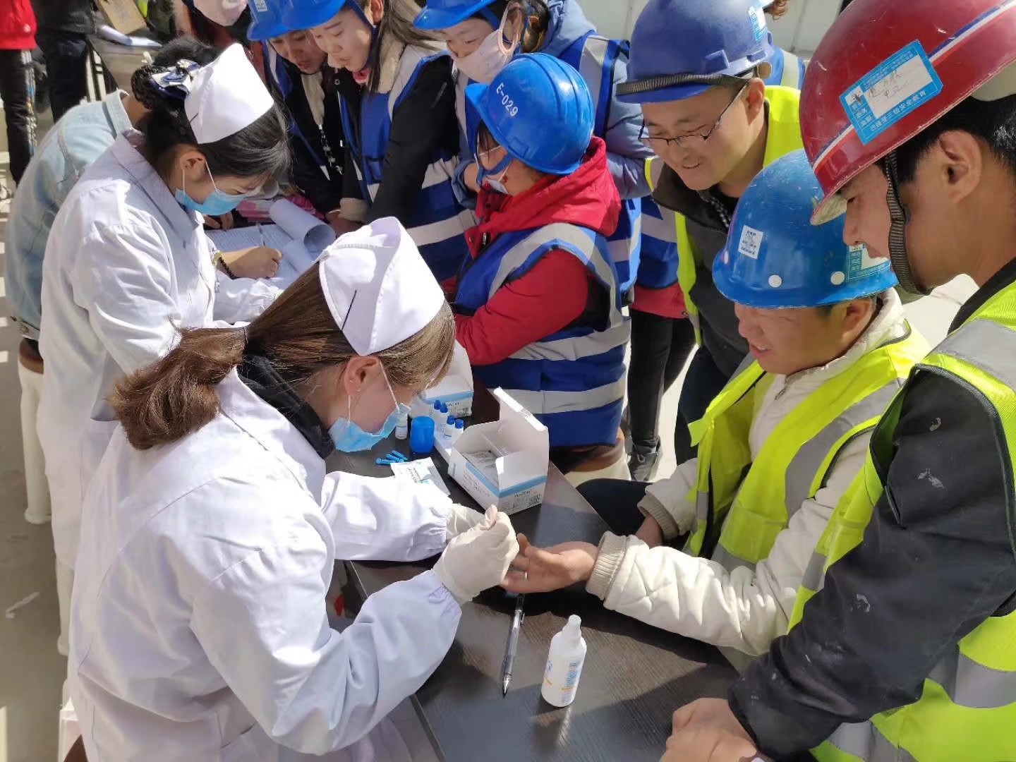 ? ? 到達(dá)活動(dòng)現(xiàn)場(chǎng)后,疾控中心工作人員和志愿者們?cè)诼櫪蠋熀蜅罱艿陌才畔?,按照預(yù)定方案迅速進(jìn)入到工作狀態(tài) ,為工作在那里的300多名農(nóng)民工人測(cè)量血壓、檢查視力、檢測(cè)丙肝和艾滋病病毒;宣傳健康知識(shí)并贈(zèng)送春季常見(jiàn)傳染疾病及艾滋病病毒預(yù)防宣傳手冊(cè);活動(dòng)結(jié)束時(shí),還為中建四局的農(nóng)民工人發(fā)放了活動(dòng)紀(jì)念品。