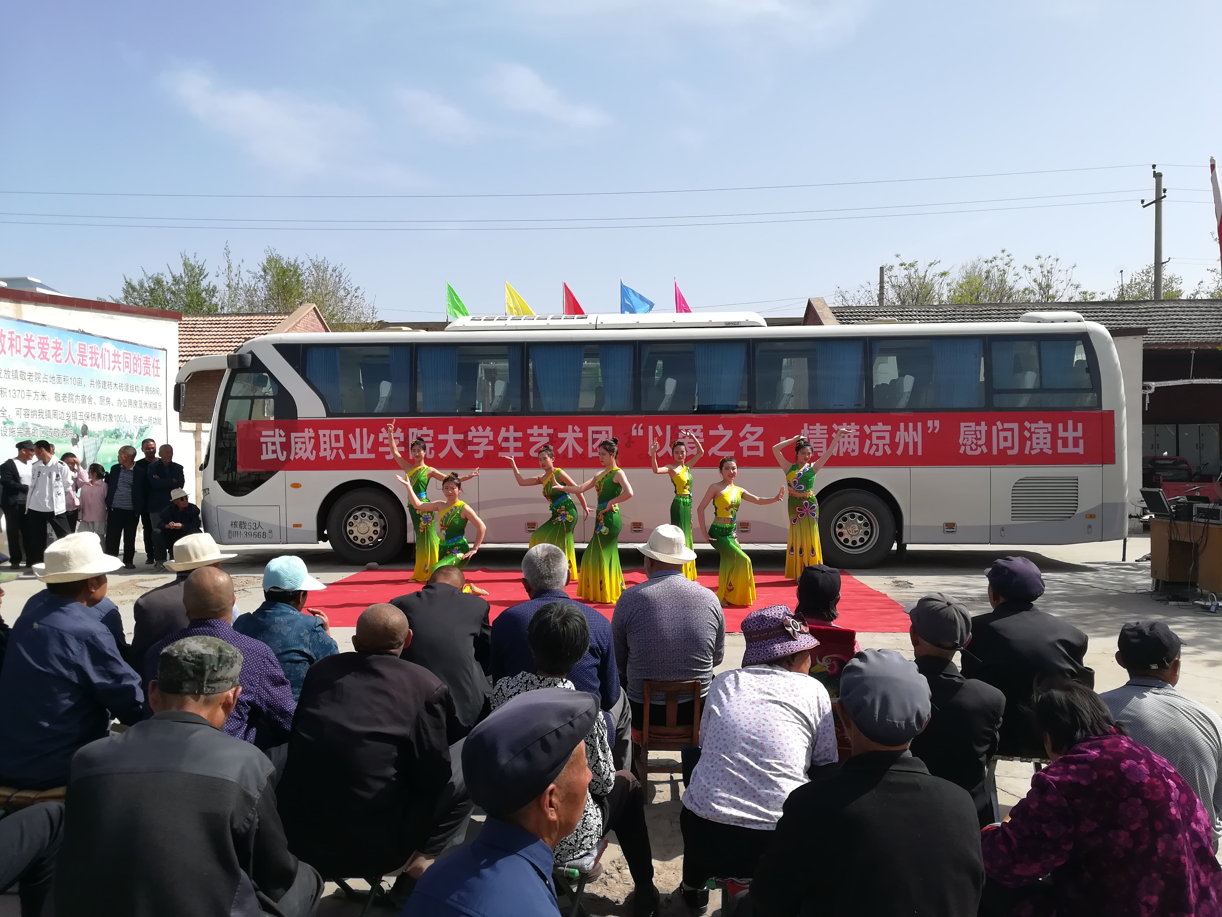 為踐行社會主義核心價值觀,弘揚(yáng)中華民族尊老、愛老、敬老的傳統(tǒng)美德,4月27日下午,學(xué)院大學(xué)生藝術(shù)團(tuán)赴涼州區(qū)發(fā)放鎮(zhèn)敬老院開展“以愛之名·情滿涼州”慰問演出。