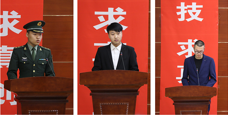 在啟動(dòng)儀式上,現(xiàn)役軍人代表31666部隊(duì)防化營防化二連排長唐功財(cái)、學(xué)院退役大學(xué)生代表李乾和入伍意愿大學(xué)生代表李宏飛進(jìn)行了發(fā)言,講出了各自的感想和感受。