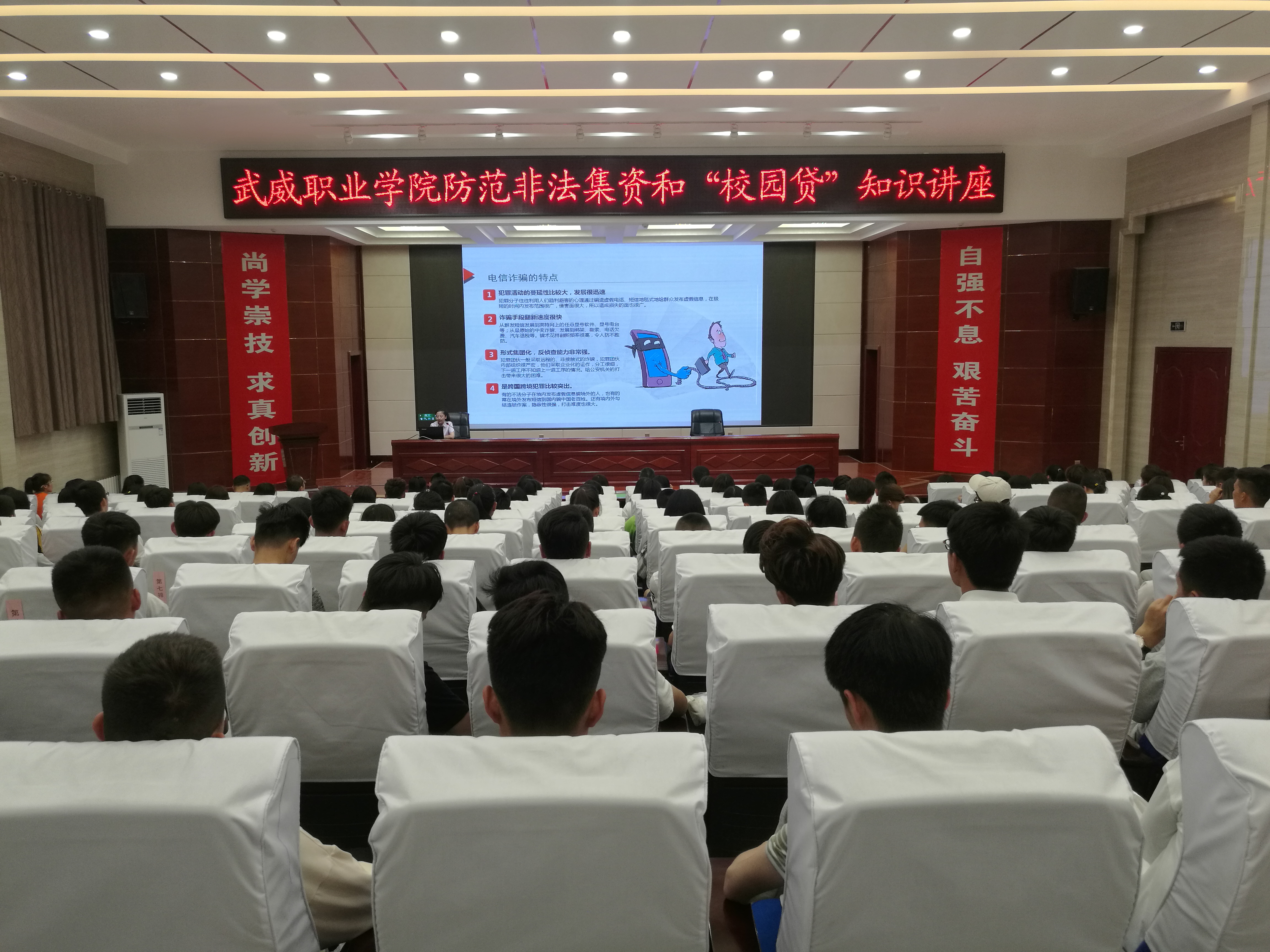 為深入貫徹落實甘肅省2019年防范非法集資和金融領(lǐng)域掃黑除惡宣傳月活動的有關(guān)精神,保護(hù)廣大師生的合法權(quán)益。6月9日晚,學(xué)院邀請中國農(nóng)業(yè)銀行武威支行風(fēng)險管理部工作人員朱琳在學(xué)院菁英廳作了關(guān)于防范非法集資和校園貸知識講座,學(xué)院副院長王永緒出席活動,保衛(wèi)處、計劃財務(wù)處負(fù)責(zé)同志及各系師生代表200余人聆聽了講座。