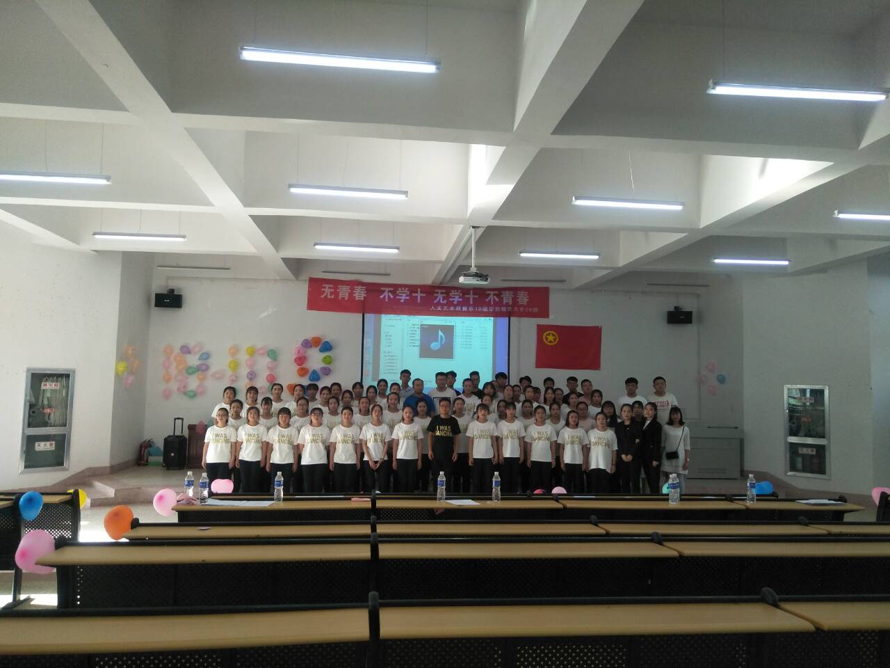 在激昂的歌曲中結(jié)束了本次團(tuán)日活動(dòng),全體同學(xué),老師以及各系主席拍照留念,這次活動(dòng)帶動(dòng)了同學(xué)的積極性,增強(qiáng)了同學(xué)們的集體榮譽(yù)感,活動(dòng)圓滿結(jié)束,同學(xué)們?yōu)榇烁冻龅呐]有白費(fèi)。體現(xiàn)出18學(xué)10是一個(gè)充滿活力的集體。