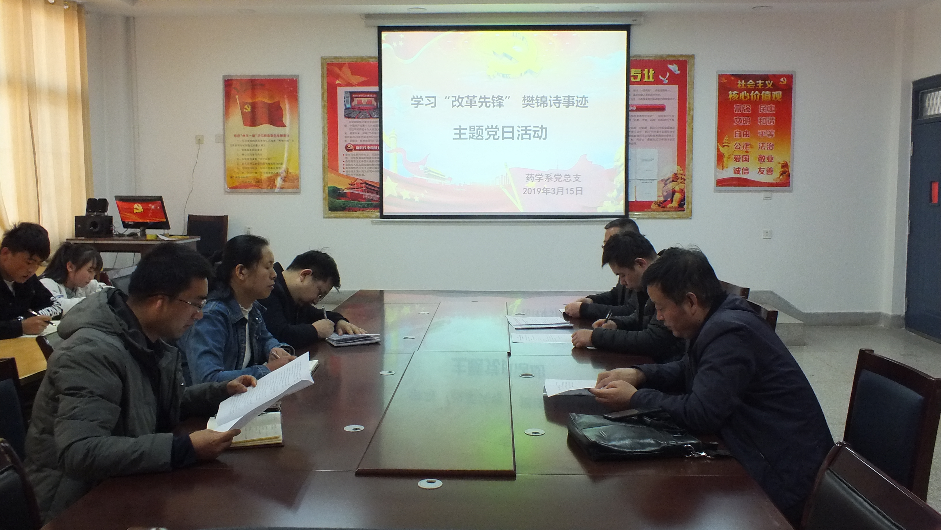 為響應(yīng)榜樣號召,傳承時代精神,3月15日,藥學(xué)系黨總支組織全體黨員在明遠(yuǎn)樓103黨員活動室,開展了學(xué)習(xí)“改革先鋒”樊錦詩先進(jìn)事跡主題黨日活動。系主任魏潤明參加了此次活動,系黨總支副書記單光年主持活動。