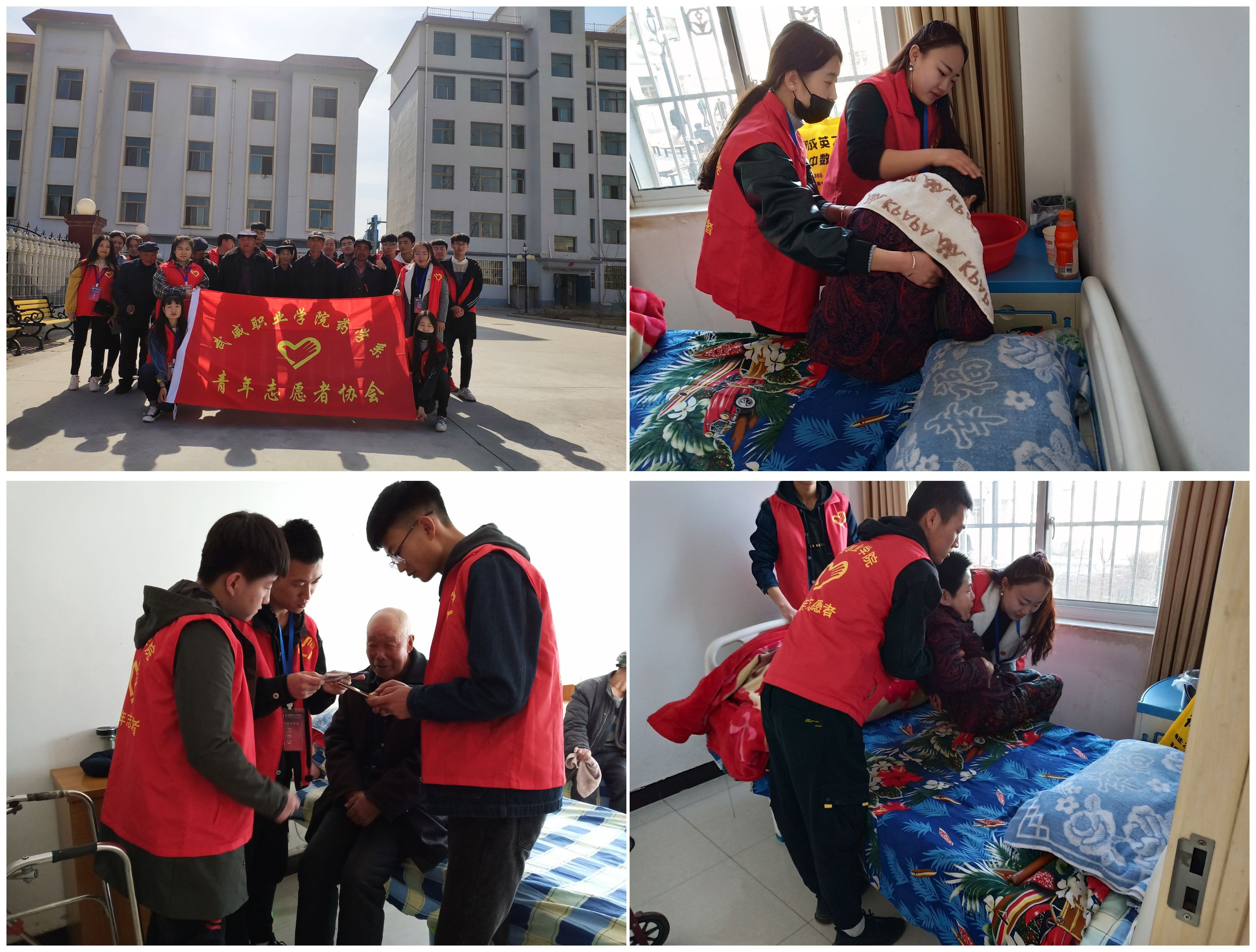 3月16日,青年志愿者到高壩敬老院,開展“關(guān)愛老人”志愿服務(wù)活動(dòng)。通過打掃衛(wèi)生,陪老人聊天,幫老人洗頭等,讓敬老院老人們感受到了社會大家庭的溫暖。