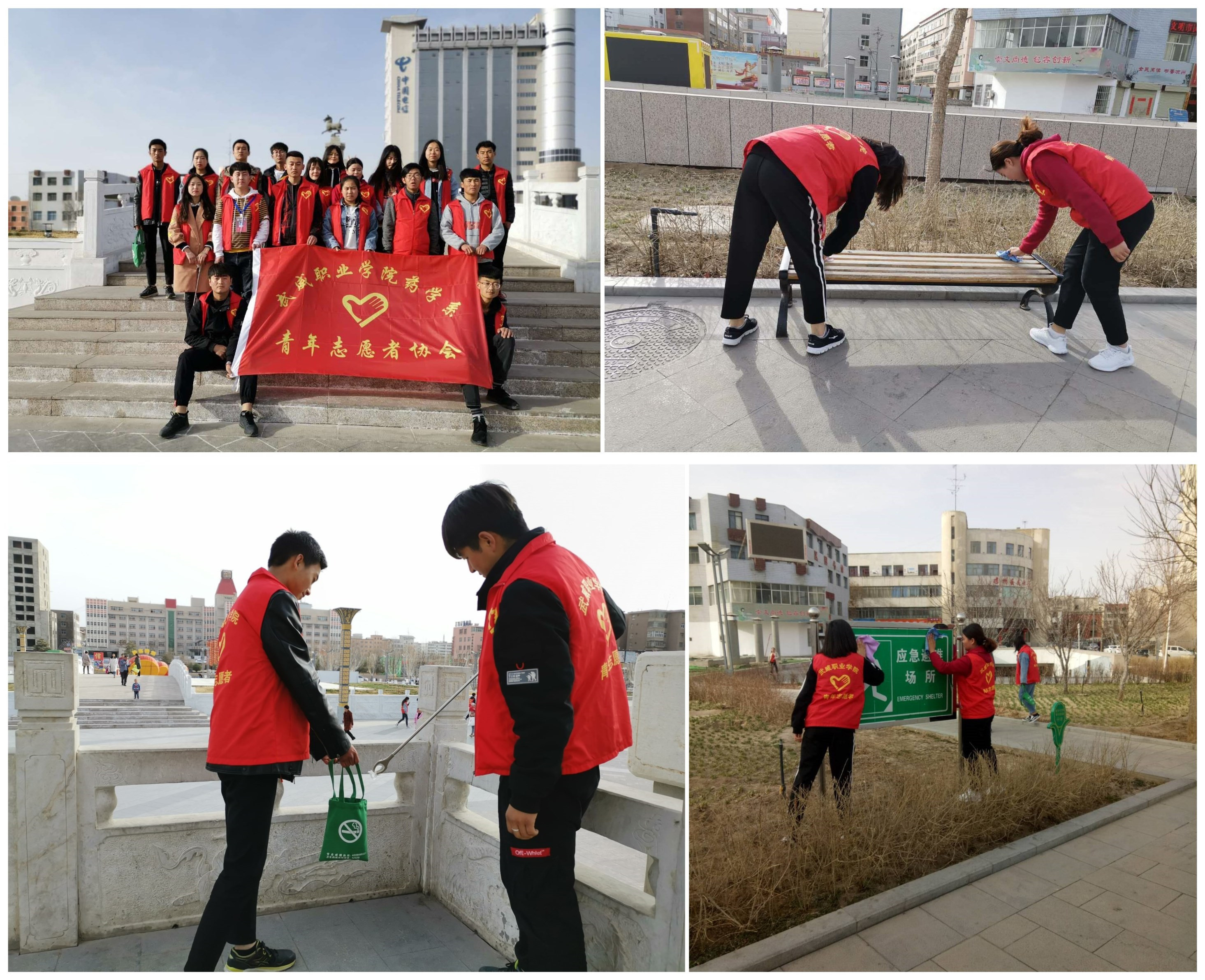 3月22日,青年志愿者在步行街文化廣場,開展“愛護(hù)公共設(shè)施人人有責(zé)”志愿服務(wù)活動(dòng),青年志愿者們通過擦健身器材、凳子等公共設(shè)施,宣講“愛護(hù)公共財(cái)物人人有責(zé)”理念。