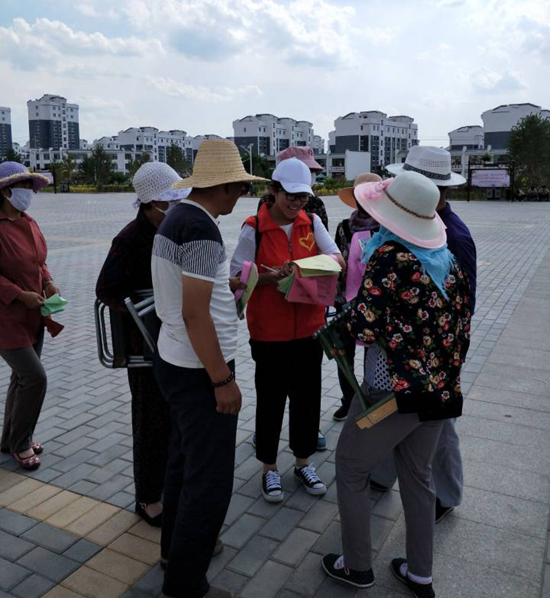 7月11日開(kāi)始, 6名志愿者在指導(dǎo)老師的帶領(lǐng)下分別進(jìn)入倉(cāng)巷社區(qū)銀城花園、天馬湖公園、古浪縣綠洲移民點(diǎn)、永豐鎮(zhèn)、發(fā)放鎮(zhèn)、天馬社區(qū)、清源鎮(zhèn)幸福家園社區(qū)、金沙社區(qū)、福利路社區(qū)、古城鎮(zhèn)祁山村、武南鎮(zhèn)、清水鎮(zhèn)等地開(kāi)展了宣講實(shí)踐活動(dòng)。通過(guò)擺放展板、實(shí)地講解、發(fā)放禁毒防艾宣傳材料、問(wèn)卷調(diào)查、個(gè)案訪談、資料收集等方式,深入了解實(shí)踐地禁毒防艾最新形勢(shì)、相關(guān)工作開(kāi)展情況、存在的實(shí)際問(wèn)題。