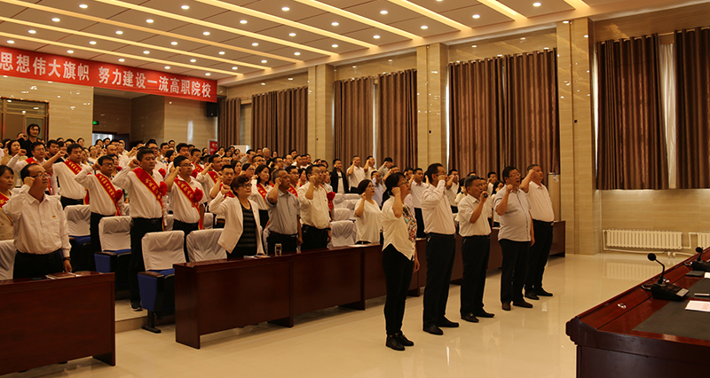 以“慶祝新中國(guó)七十華誕 弘揚(yáng)新時(shí)代尊師風(fēng)尚”為主題的教師節(jié)慶祝大會(huì)在莊嚴(yán)的《國(guó)歌》聲中拉開(kāi)帷幕。學(xué)院黨委書(shū)記、院長(zhǎng)趙明帶領(lǐng)全體教師重溫了教師誓詞,鏗鏘有力的誓詞、莊嚴(yán)的承諾,進(jìn)一步堅(jiān)定了廣大教師立德樹(shù)人的理想和信念。黨委副書(shū)記翟存祥領(lǐng)學(xué)了高校教師行為準(zhǔn)則,對(duì)高校教師行為提出了要求。