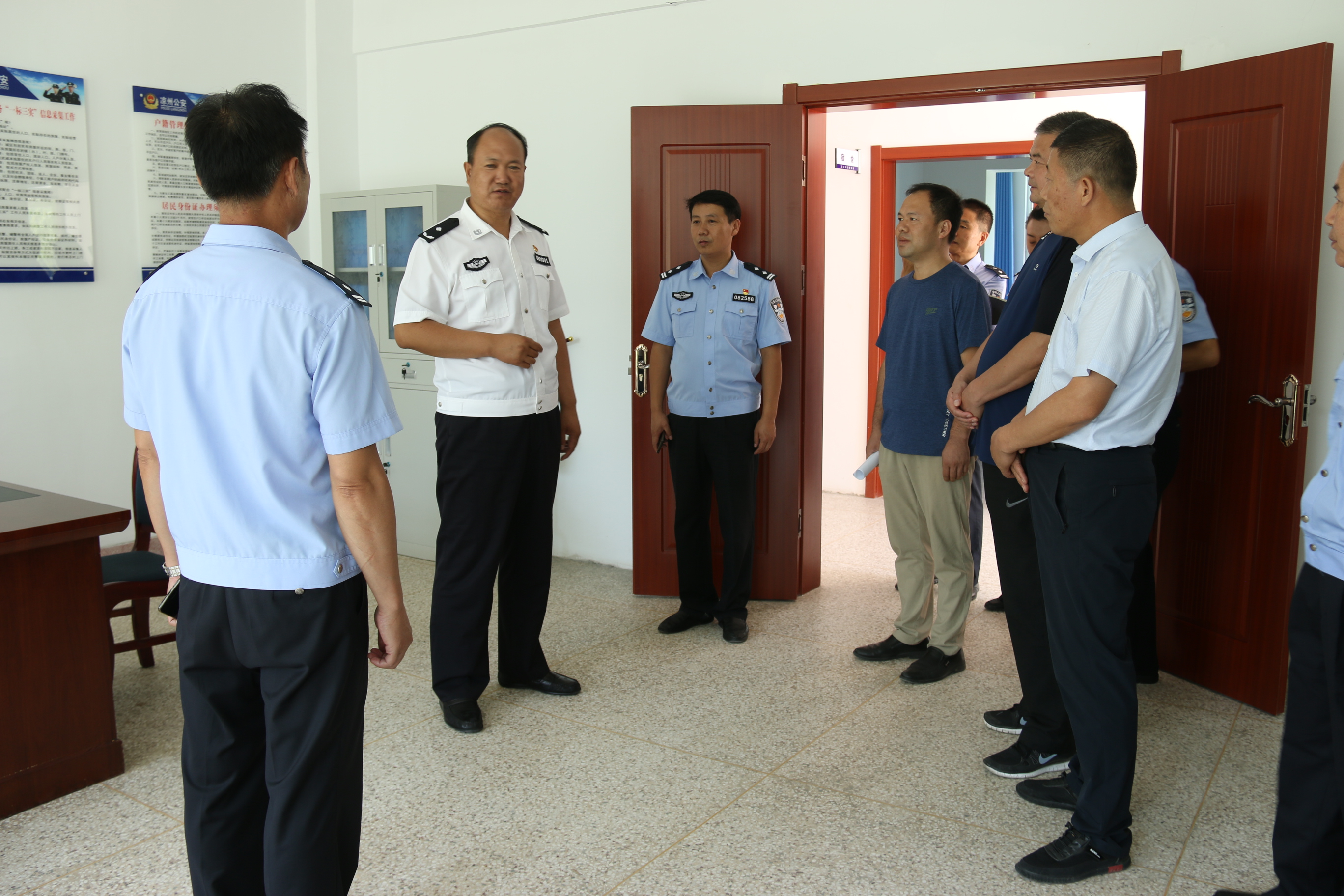 李進強一行實地察看了警務(wù)室軟硬件設(shè)施,聽取了警務(wù)室運行情況,對我院高度重視校園安全工作,積極落實上級部門要求,高標(biāo)準做好校園警務(wù)室建設(shè)給予了充分肯定,對深化警校共建工作提出了意見和建議。