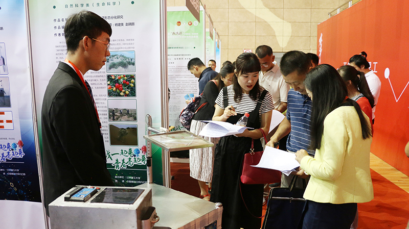 我院5件作品接受了評審專家的質(zhì)詢答辯,6件科技發(fā)明類作品參加了現(xiàn)場展示,獲得觀摩師生的關(guān)注和贊許。參會領(lǐng)導和評審專家在我院展臺前看演示、聽解說,親切詢問我院學生參與科技創(chuàng)新、創(chuàng)業(yè)活動的情況。