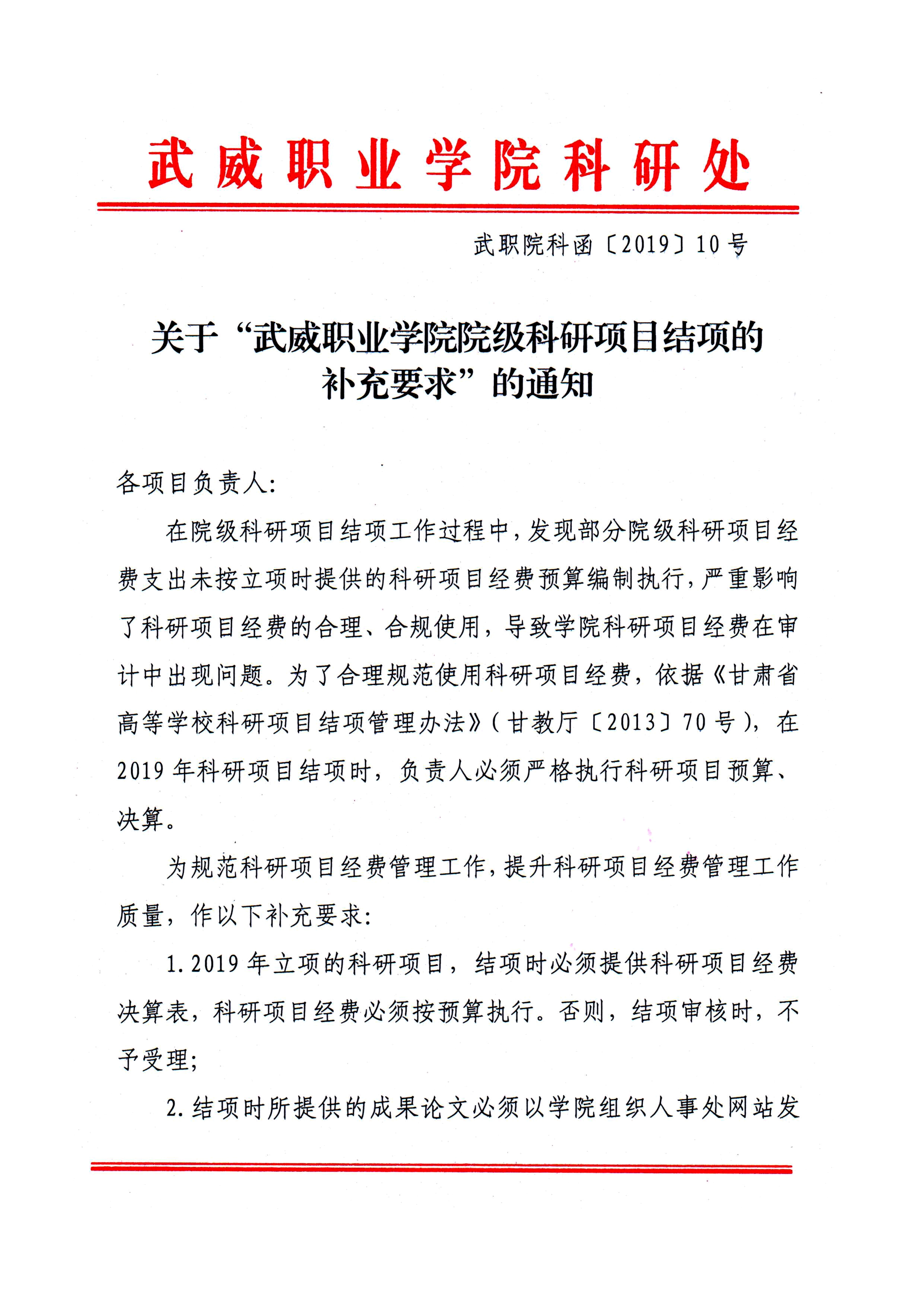關(guān)于“武威職業(yè)學(xué)院院級科研項目結(jié)項的補(bǔ)充要求”的通知