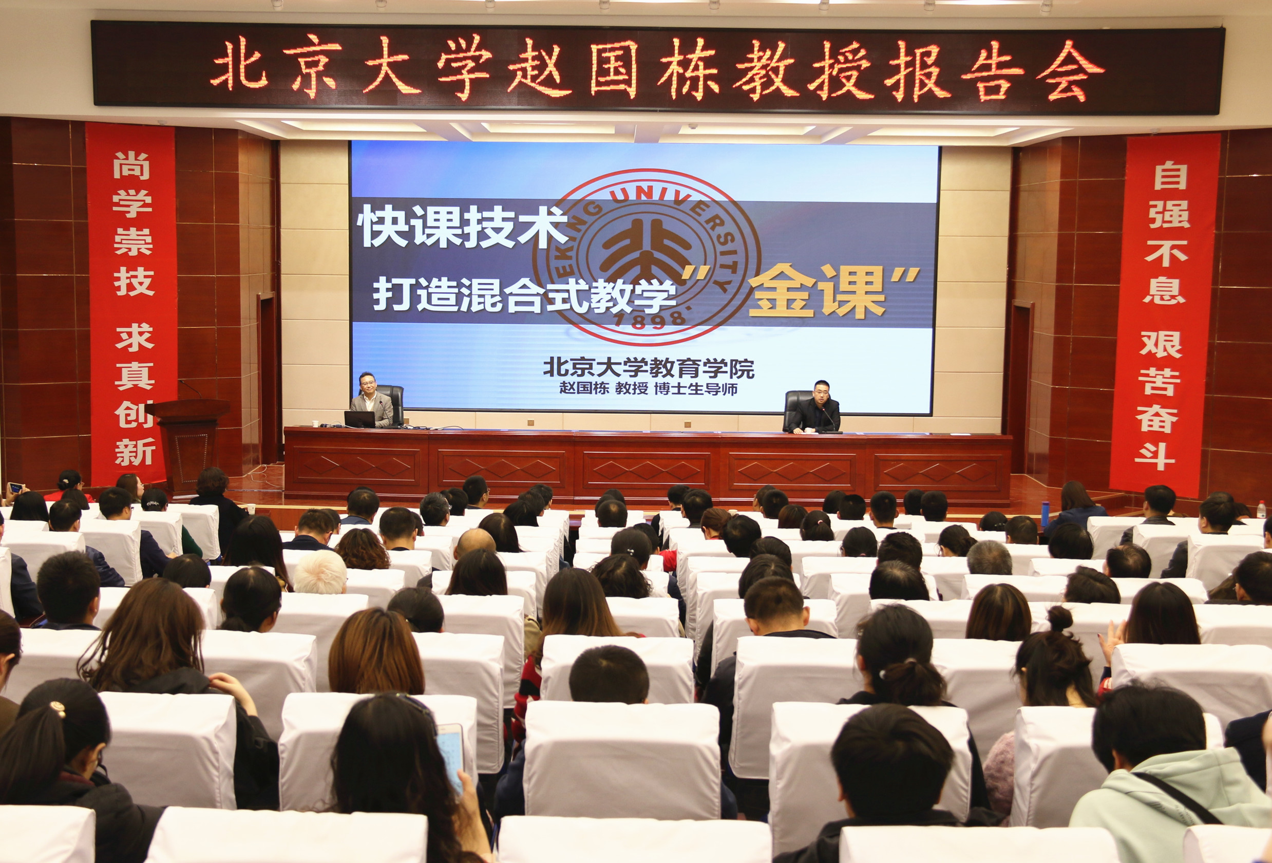 4月15日,北京大學(xué)博士生導(dǎo)師,微課技術(shù)實(shí)驗(yàn)室主任,“國(guó)際信息研究學(xué)會(huì)”(IS4IS)中國(guó)分會(huì)教育信息化專(zhuān)業(yè)委員會(huì)副主任, “中國(guó)開(kāi)放式教育資源協(xié)會(huì)”(CORE)專(zhuān)家趙國(guó)棟教授,應(yīng)邀到學(xué)院作專(zhuān)題報(bào)告。 教務(wù)處副處長(zhǎng)張世亮主持報(bào)告會(huì),甘肅冶金職業(yè)技術(shù)學(xué)院、甘肅畜牧工程學(xué)院、武威職業(yè)教育集團(tuán)、蘭州交通大學(xué)新能源與動(dòng)力工程學(xué)院以及各系教師代表220人聆聽(tīng)了報(bào)告。
