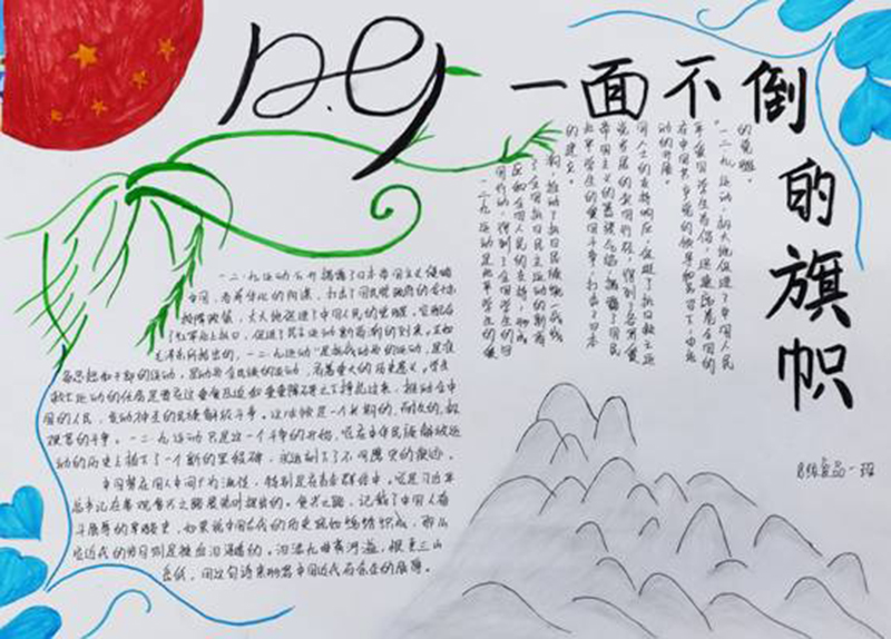 今年是“12.9”愛(ài)國(guó)運(yùn)動(dòng)84周年。現(xiàn)代農(nóng)業(yè)技術(shù)系的十二個(gè)班級(jí)通過(guò)辦手抄報(bào)的形式開(kāi)展紀(jì)念“12·9”運(yùn)動(dòng),旨在加強(qiáng)學(xué)生的愛(ài)國(guó)主義教育,弘揚(yáng)愛(ài)國(guó)主義精神,教育學(xué)生銘記歷史,勿忘國(guó)恥,增強(qiáng)民族自豪感。