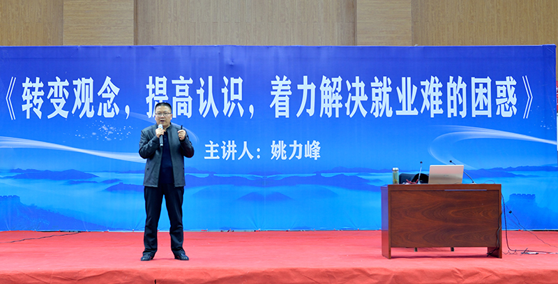 為貫徹2020屆全國普通高校畢業(yè)生就業(yè)創(chuàng)業(yè)工作網(wǎng)絡(luò)視頻會(huì)議精神,學(xué)院以習(xí)近平新時(shí)代中國特色社會(huì)主義思想為指導(dǎo),深入落實(shí)黨中央、國務(wù)院關(guān)于促進(jìn)高校畢業(yè)生就業(yè)創(chuàng)業(yè)的一系列重大決策部署,把畢業(yè)生就業(yè)工作擺在最突出位置,確保畢業(yè)生就業(yè)大局穩(wěn)定。12月14日上午,學(xué)院組織2020屆畢業(yè)生,在體育館參加了題為《轉(zhuǎn)變觀念,提高認(rèn)識,著力解決就業(yè)難得困惑》的專家講座,引導(dǎo)畢業(yè)生轉(zhuǎn)變觀念、積極就業(yè)。講座由省人社廳人力資源市場檔案管理部部長姚力峰主講,招生就業(yè)處副處長董鵬主持。