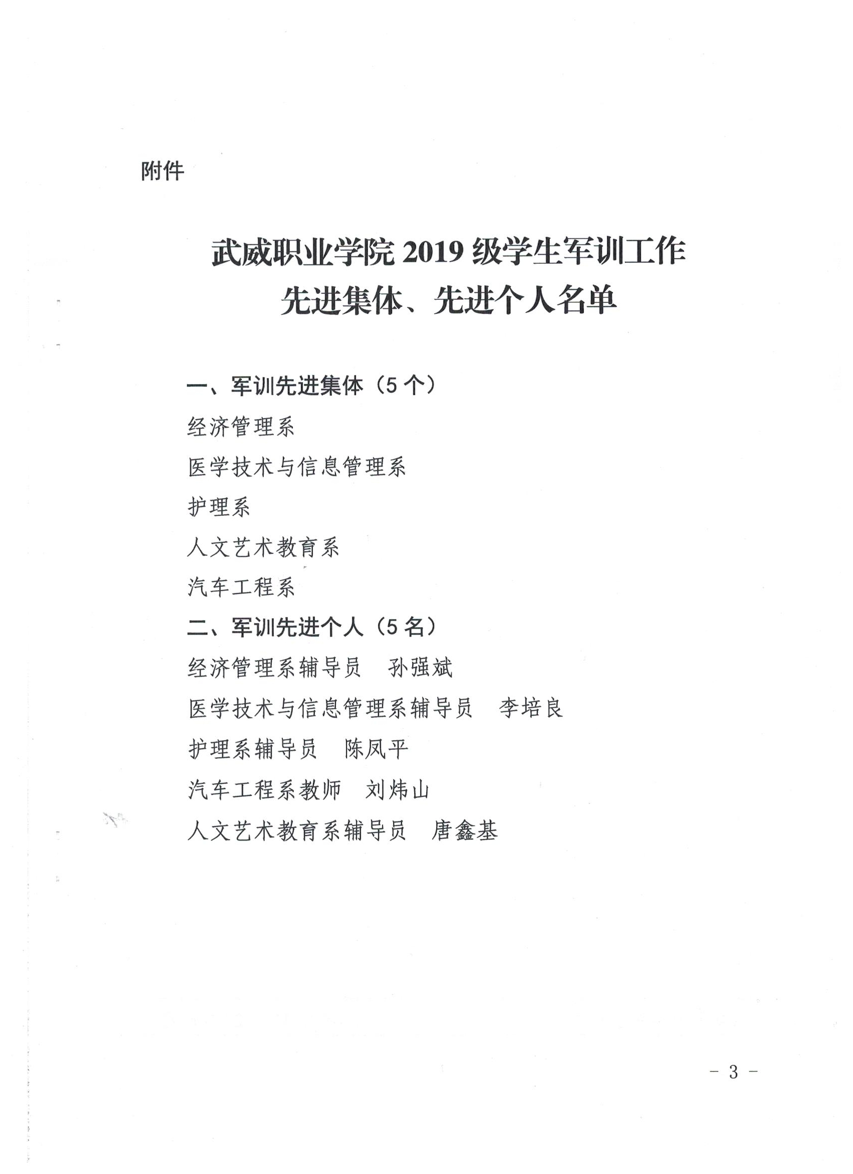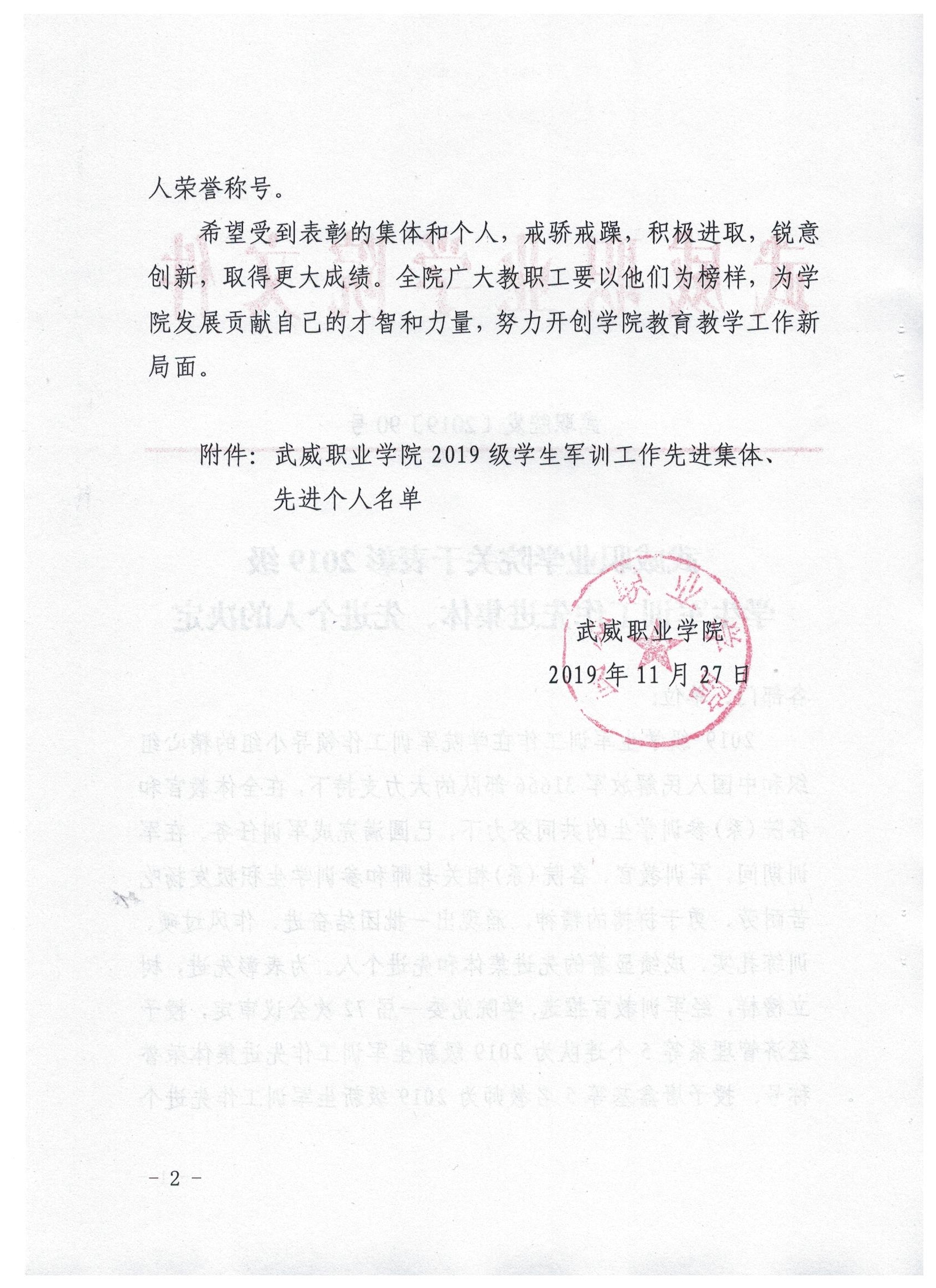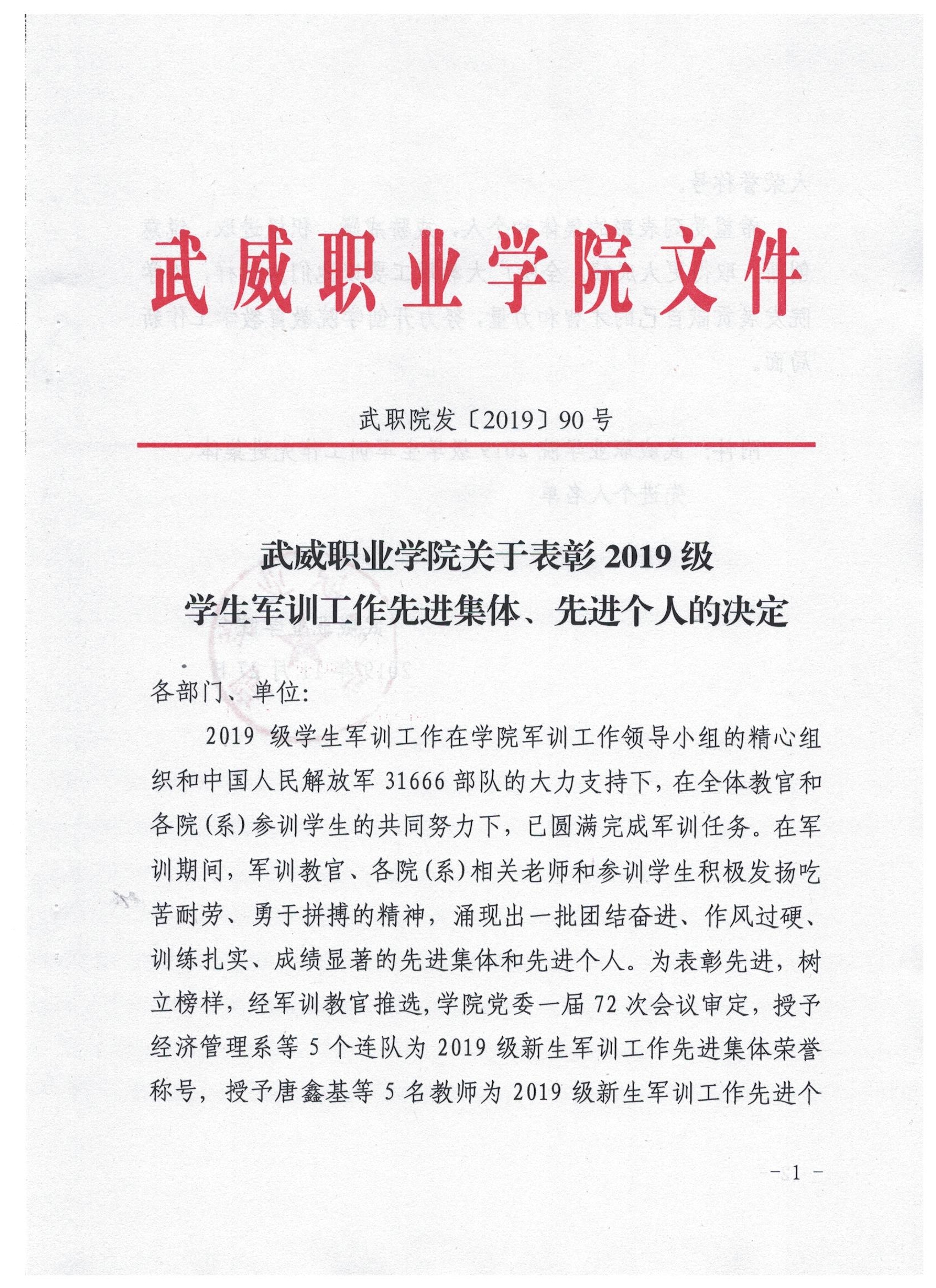 武威職業(yè)學院關(guān)于表彰2019級學生軍訓工作先進集體、先進個人的決定