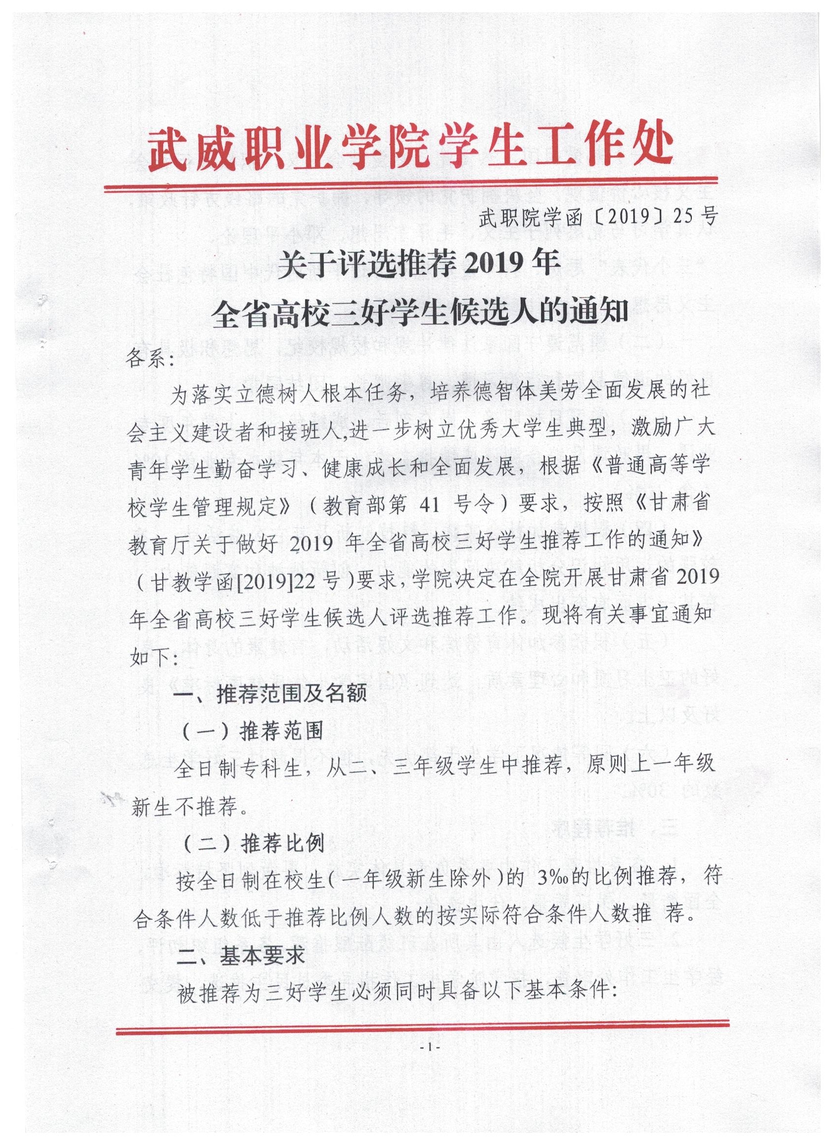關(guān)于評(píng)選推薦2019年全省高校三好學(xué)生候選人的通知